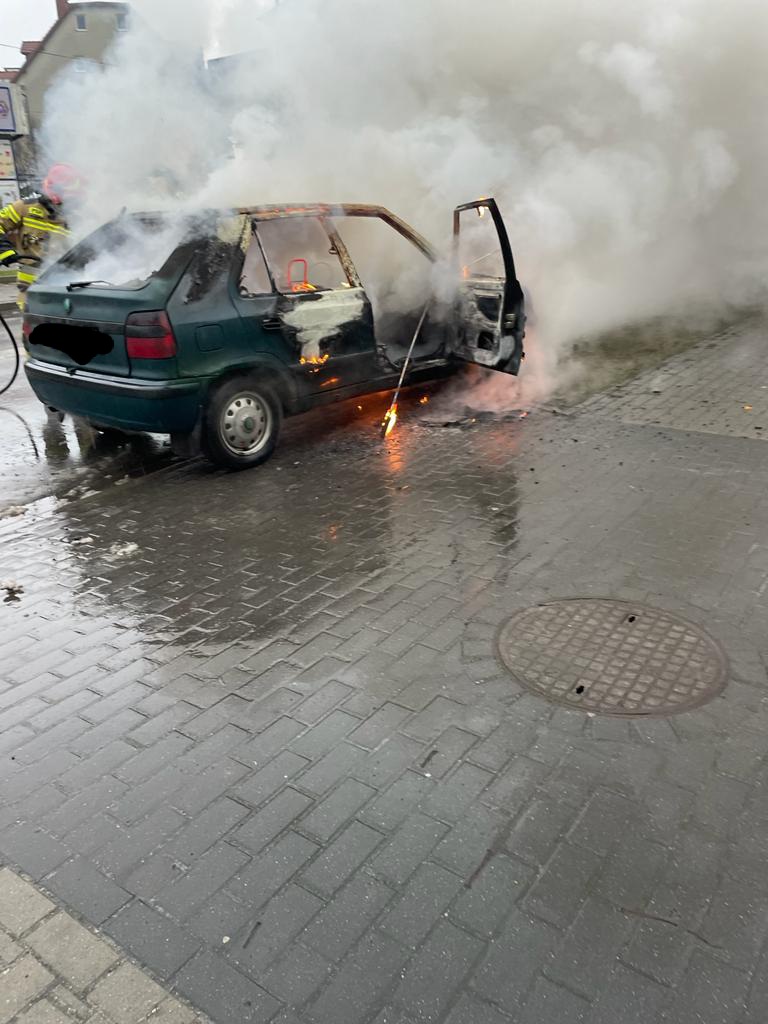 Pożar samochodu osobowego na ul. Moniuszki w Żarach