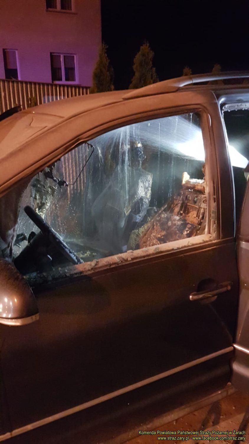 7 lipca 2021r. w nocy o godzinie 02:03 Dyżurny Stanowiska Kierowania KP PSP w Żarach otrzymał zgłoszenie o palącym się samochodzie osobowym marki VW Sharan na posesji przy ul. Osadniczej w Żarach. Natychmiast do zdarzenia zadysponował jeden zastęp gaśniczy z JRG Żary. Po przybyciu zastępu na miejsce zdarzenia strażacy zastali palący się samochód osobowy, który przy pomocy gaśnicy proszkowej próbował ugasić właściciel pojazdu. Działania Państwowej Straży Pożarnej polegały na zabezpieczeniu miejsca zdarzenia, ugaszeniu palącego się pojazdu oraz odłączeniu przewodów w akumulatorze. Na miejscu prowadzonych działań gaśniczych obecny był partol Policji. Prawdopodobną przyczyną pożaru było podpalenie. Policja prowadzi dochodzenie w tej sprawie.