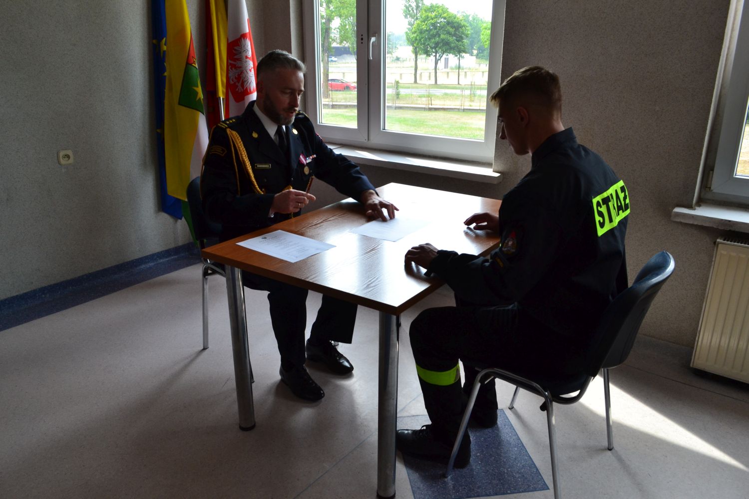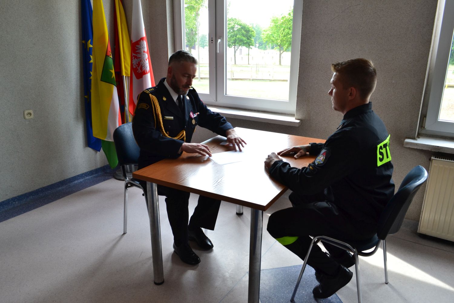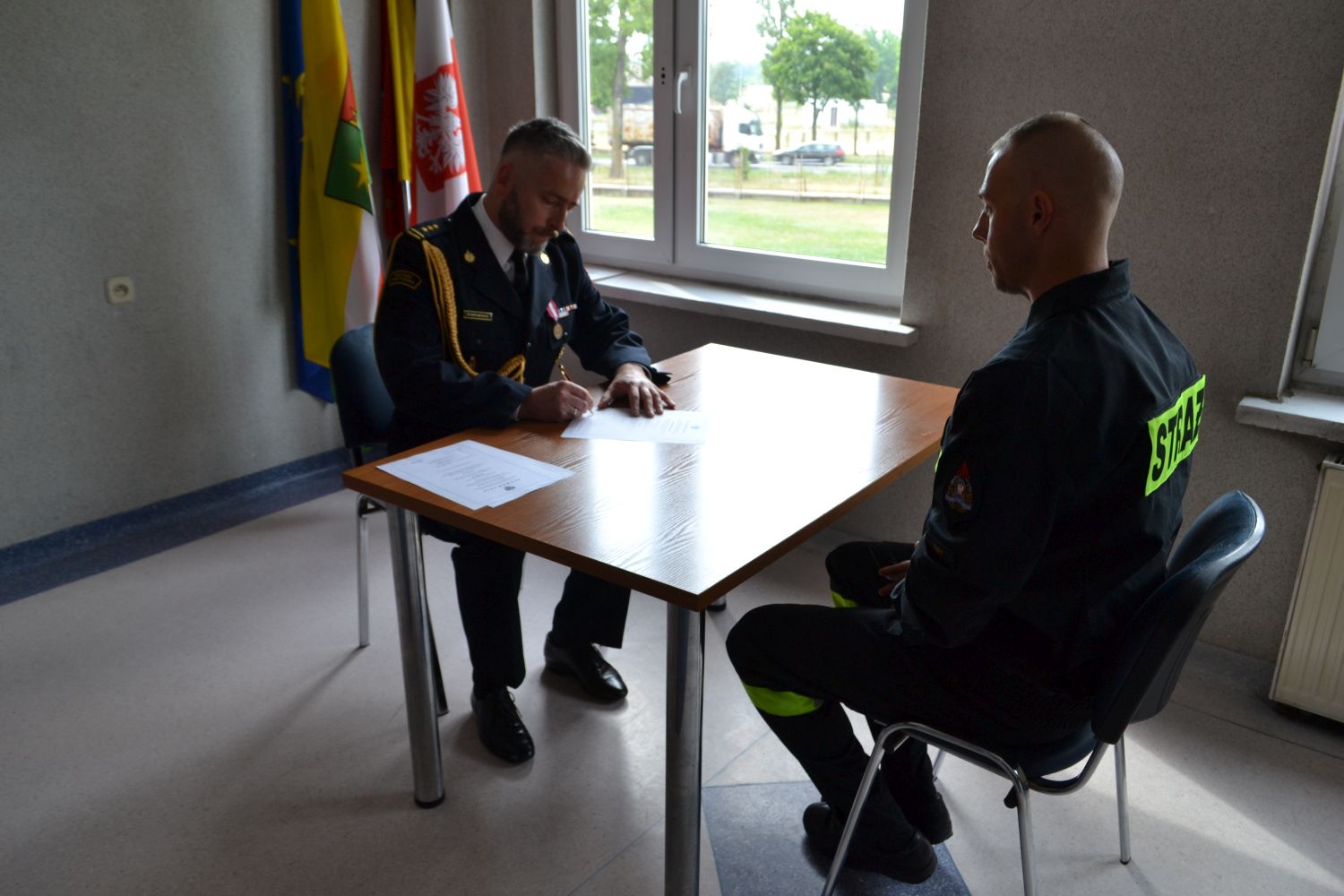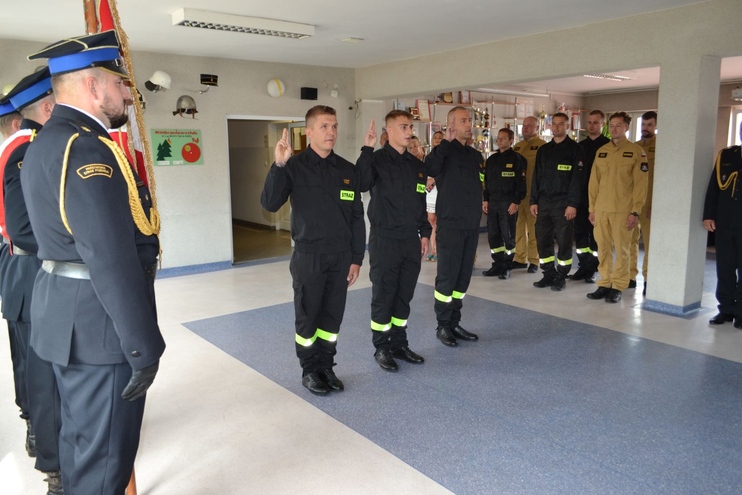 Uroczystość zakończyło podpisanie aktów ślubowania i przywitanie przez komendanta każdego ze strażaków uściskiem dłoni i słowami „witam w szeregach Państwowej Straży Pożarnej”.