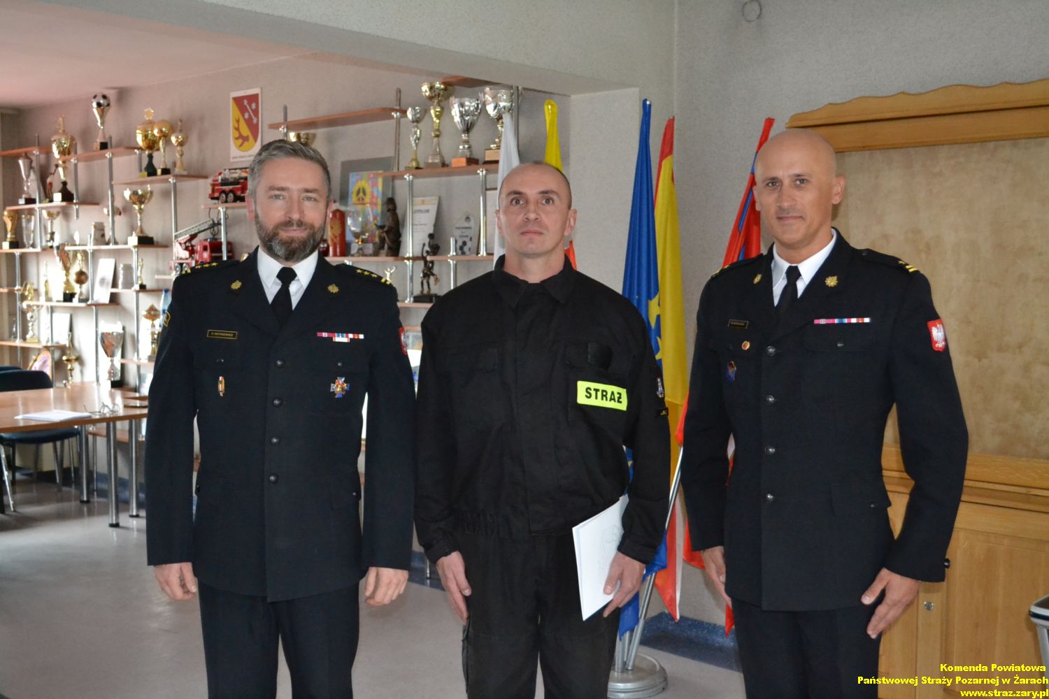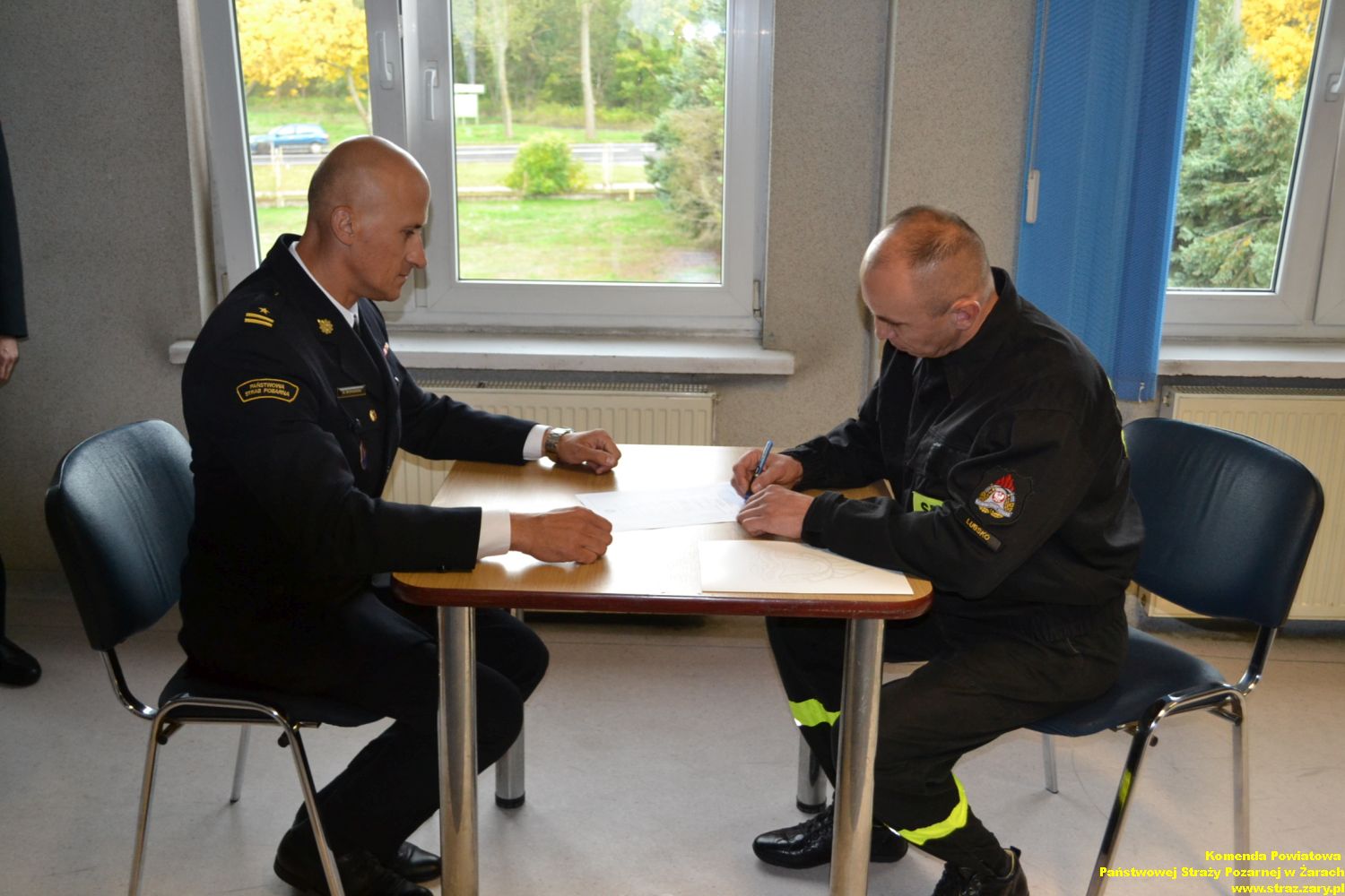 W dniu 03 października 2022 r. w Komendzie Powiatowej PSP w Żarach odbyła się uroczysta zbiórka podczas której mł. bryg. Mariusz Morawski Komendant Powiatowy PSP w Żarach powitał w służbie i przyjął ślubowanie od str. Roberta Boczara. Z dniem 1 października 2022 roku str. Robert Boczar został mianowany na stanowisko stażysty w służbie przygotowawczej oraz rozpoczął służbę w Jednostce Ratowniczo Gaśniczej w Lubsku.