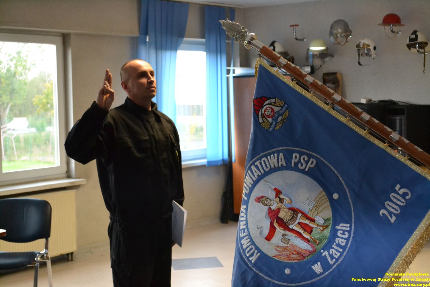 Ślubowanie strażaka w Komendzie Powiatowej PSP w Żarach
