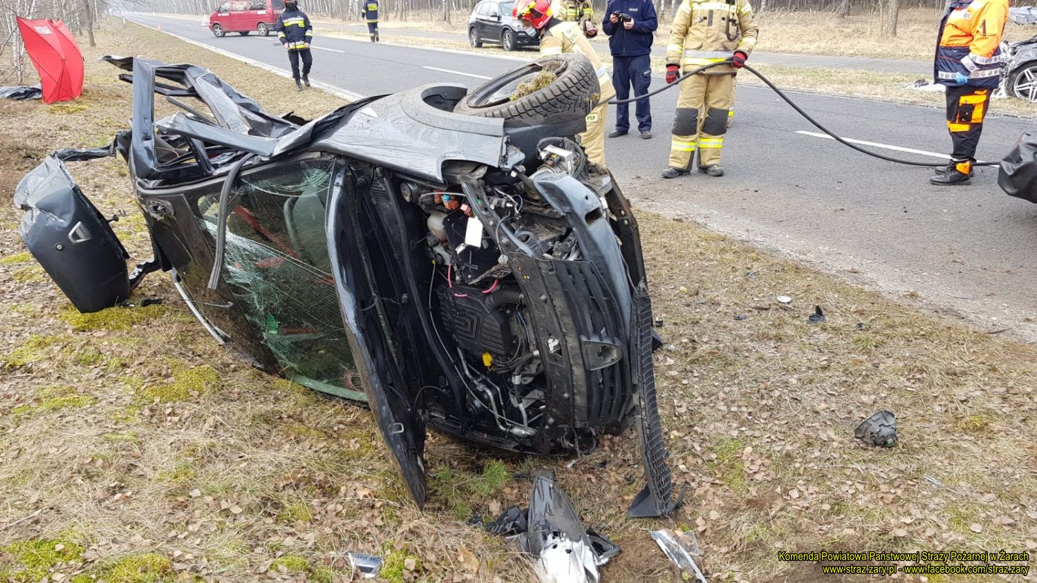 Osoba poszkodowana została przekazana dla Zespołu Ratownictwa Medycznego (ZRM), który przejął prowadzenie RKO. Po kilkudziesięciu minutach ZRM odstąpił od czynności. Został stwierdzony zgon mężczyzny. Prawdopodobną przyczyną wypadku drogowego było niedostosowanie prędkości do panujących warunków drogowych. Działania straży pożarnej trwały 2,5 godziny.