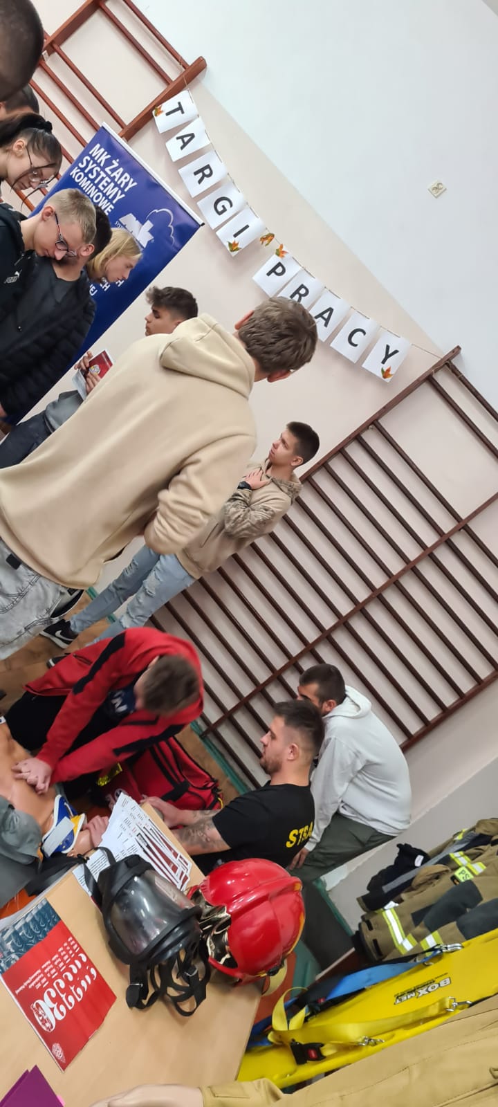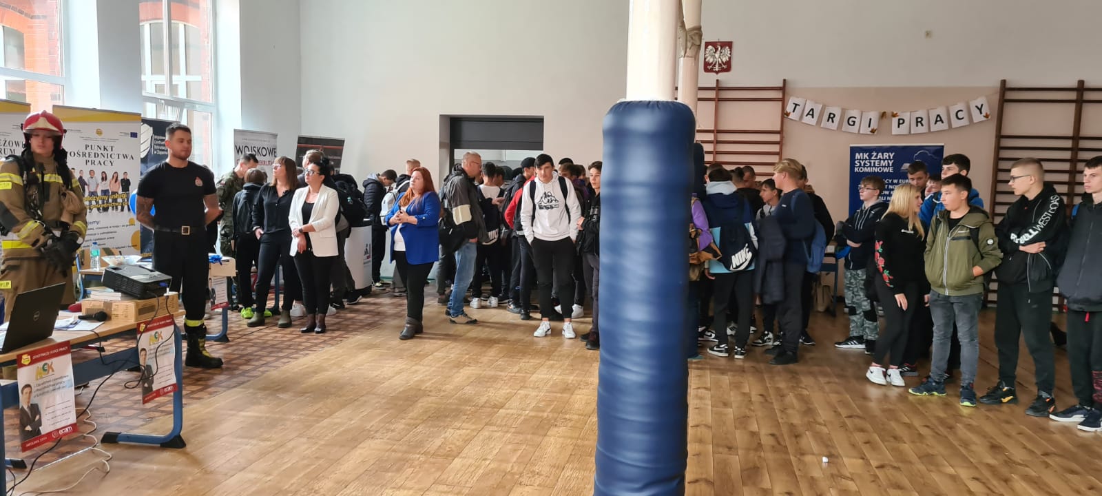 W dniu 19 października 2022 r. w Centrum Kształcenia Zawodowego i Ustawicznego w Żarach odbyły się „Targi Pracy”, Przedsięwzięcie zorganizowane zostało przez Młodzieżowe Centrum Kariery w Żarach pod patronatem Lubuskiej Wojewódzkiej Komendy Ochotniczych Hufców Pracy. Komenda Powiatowa Państwowej Straży Pożarnej w Żarach wystawiła swoje stanowisko promujące zawód strażaka, st. asp. Agnieszka Borowicz i st. str. Wojciech Kuczak przybliżyli uczniom zawód strażaka oraz omówili szczegóły i możliwości zatrudnienia w PSP. Podczas targów młodzież mogła między innymi przymierzyć umundurowanie bojowe strażaka, aparat ochrony układu oddechowego, podłączyć wąż do prądownicy, spróbować swoich sił w zakresie pierwszej pomocy – ćwicząc resuscytację krążeniowo-oddechową na fantomie. W trakcie prezentacji wyświetlone zostały filmy promocyjne zachęcające do wstąpienia w szeregi PSP oraz pokazujące przemiany jakie nastąpiły w trakcie 30 lat istnienia formacji. W targach uczestniczyły prywatne firmy z powiatu żarskiego, Wojsko oraz Komenda Powiatowa Policji w Żarach.
