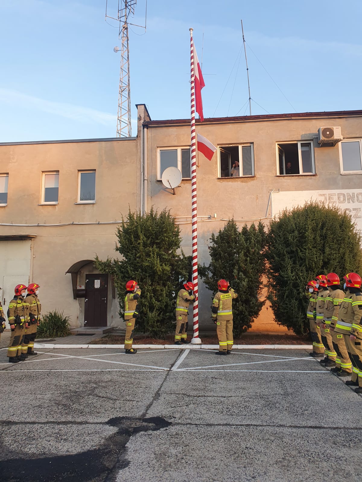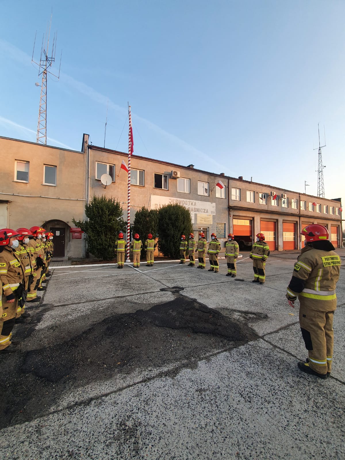 W dniu 11 listopada 2021 roku na terenie Komendy Powiatowej Państwowej Straży Pożarnej w Żarach i Jednostki Ratowniczo-Gaśniczej w Lubsku odbyła się uroczysta zmiana służby z okazji Narodowego Święta Niepodległości, podczas której dokonano uroczystego wciągnięcia flagi na maszt i odśpiewano hymn państwowy.
