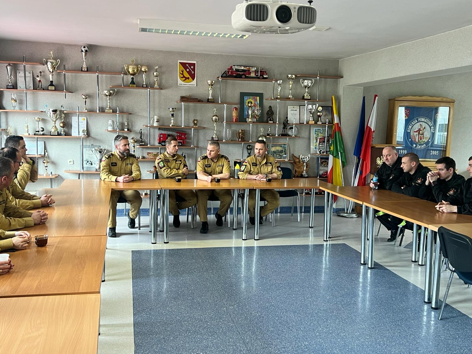 3 kwietnia 2024 r. Zastępcy Lubuskiego Komendanta Wojewódzkiego, bryg. Bartłomiej Mądry, bryg. Jarosław Korzeniewski i bryg. Rafał Konieczny wizytowali Komendę Powiatową Państwowej Straży Pożarnej w Żarach. Spotkali się ze strażakami w Jednostce Ratowniczo Gaśniczej w Lubsku, a następnie w JRG w Żarach ze strażakami i pracownikami JRG i komendy. Zapoznali się z warunkami służby i pracy w obiektach w Żarach i Lubsku. Rozmawiano o bieżących sprawach służbowych i planach na przyszłość. Spotkanie zakończyło się na terenie budowy nowej strażnicy KP z JRG w Żarach, gdzie p.o. Komendanta Powiatowego PSP w Żarach st. bryg. Paweł Hryniewicz zaprezentował nowy obiekt.