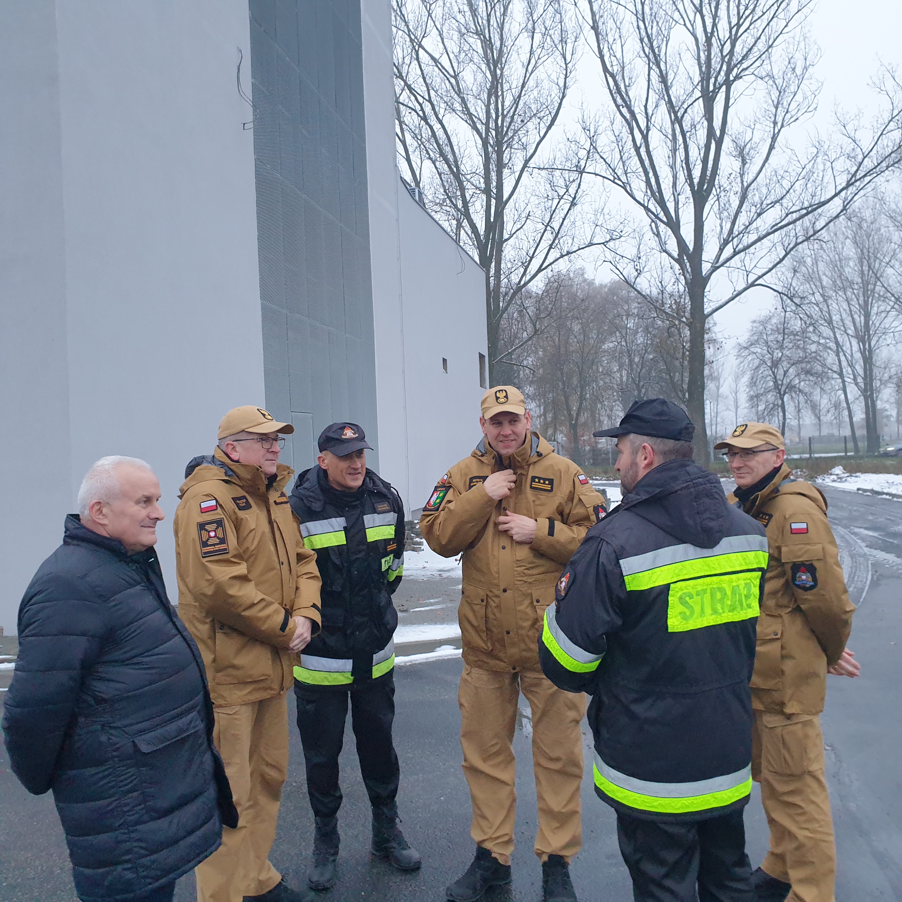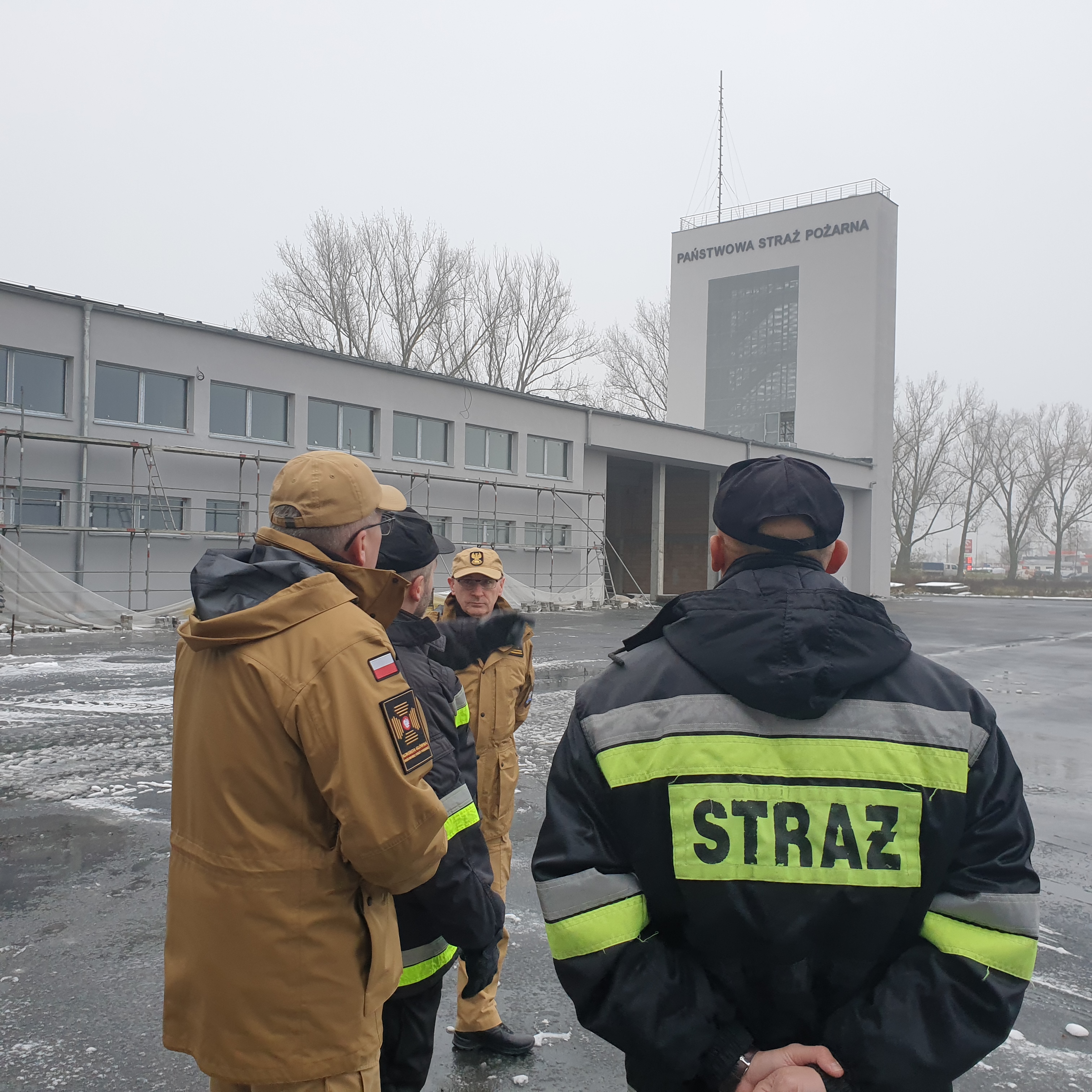 Zastępca Komendanta Głównego PSP nadbryg. Krzysztof Hejduk w obecności Lubuskiego Komendanta Wojewódzkiego st. bryg. Patryka Maruszaka, Z-cy Lubuskiego Komendanta Wojewódzkiego PSP st. bryg. Janusza Drozdy oraz Starosty Powiatu Żarskiego Pana Józefa Radziona wizytował teren budowy nowej siedziby Komendy Powiatowej PSP w Żarach. Wizytacja rozpoczęła się od złożenia meldunku Komendantowi Głównemu nadbryg. Krzysztofowi Hejdukowi przez Komendanta Powiatowego PSP w Żarach mł. bryg. Mariusza Morawskiego. Następnie omówiono przebieg poszczególnych etapów inwestycji, które przybliżył Zastępca Komendanta Powiatowego PSP w Żarach st. bryg. Paweł Hryniewicz.