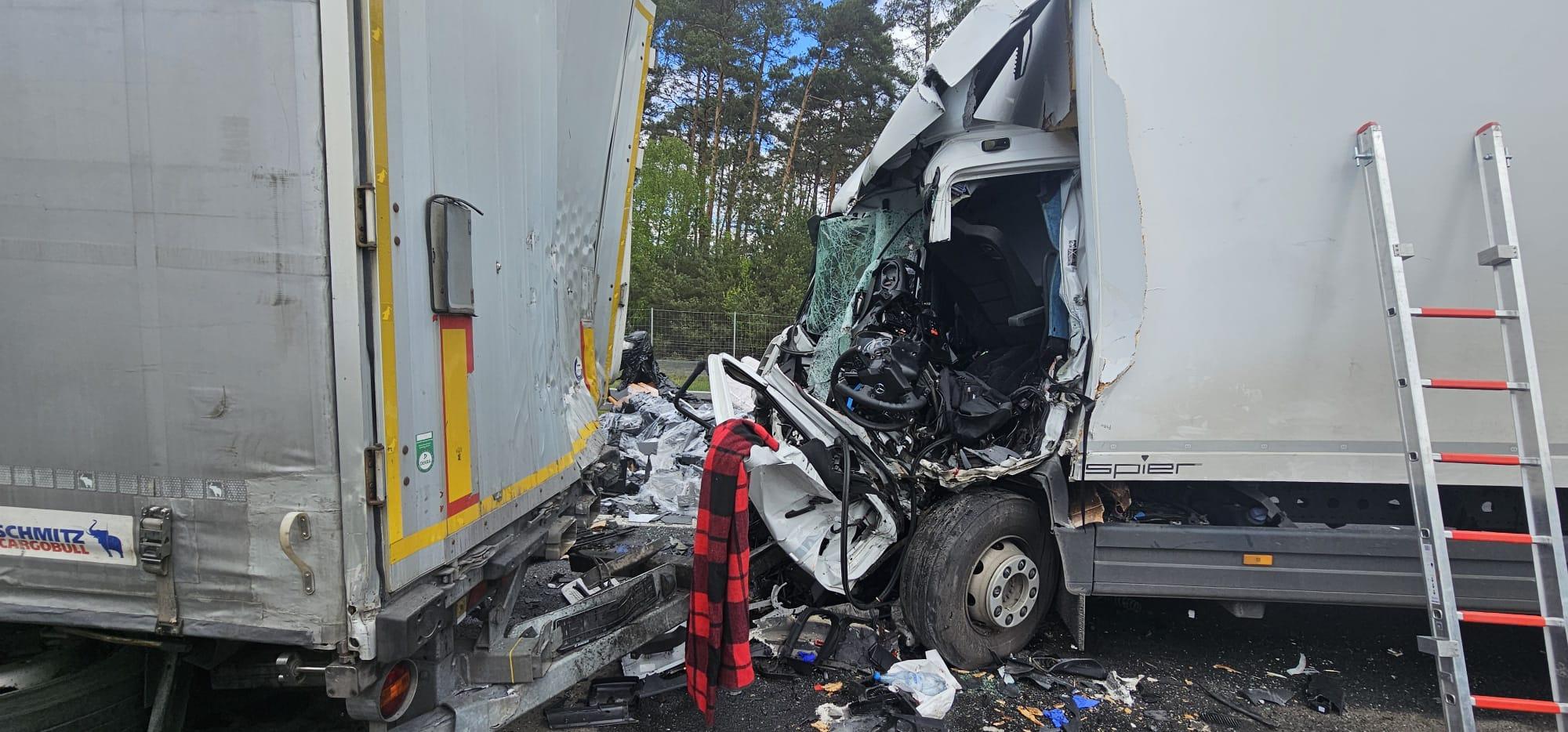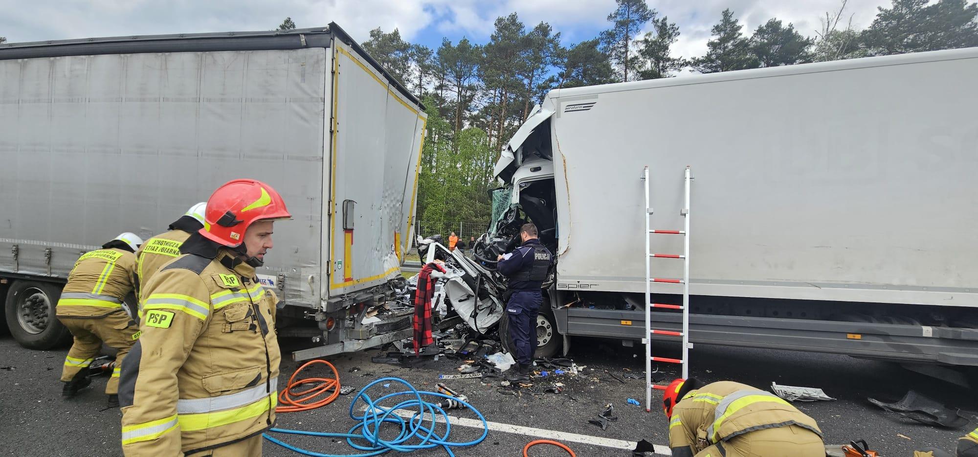 23 kwietnia 2024 r. o godzinie 11:43 dyżurny Stanowiska Kierowania Komendanta Powiatowego PSP w Żarach przyjął zgłoszenie o wypadku drogowym dwóch pojazdów ciężarowych na drodze krajowej A18 dwa kilometry od granicy z Niemcami. Dyżurny stanowiska kierowania niezwłocznie zadysponował zastępy z Jednostki Ratowniczo-Gaśniczej w Żarach oraz najbliższej jednostki Ochotniczej Straży Pożarnej z Trzebiela. Na miejscu zdarzenia zastano samochód ciężarowy, który wjechał w naczepę poprzedzającego go pojazdu. Działania zastępów straży polegały na zabezpieczeniu miejsca zdarzenia, wykonaniu dostępu do osoby poszkodowanej w zmiażdżonej kabinie i przekazaniu dla Zespołu Ratownictwa Medycznego. Pomimo długotrwałej reanimacji osoby poszkodowanej nie udało się uratować. W działaniach brały udział służby: Policja, Lotnicze Pogotowie Ratunkowe (HEMS) oraz służba drogowa. Cała akcja trwała ponad dwie godziny.