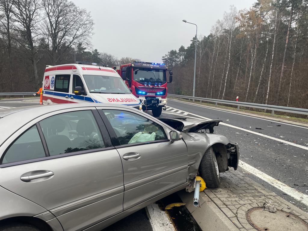 Po przyjeździe pierwszego zastępu na miejsca zdarzenia zastano samochody osobowe marki Mercedes i Mitsubishi po zderzeniu czołowym. W zdarzeniu poszkodowanych zostało 3 osoby. Działania straży pożarnej polegały na zabezpieczeniu miejsca zdarzenia, odłączeniu przewodów w akumulatorach oraz zabezpieczeniu wycieków płynów eksploatujących z samochodu Mercedes.