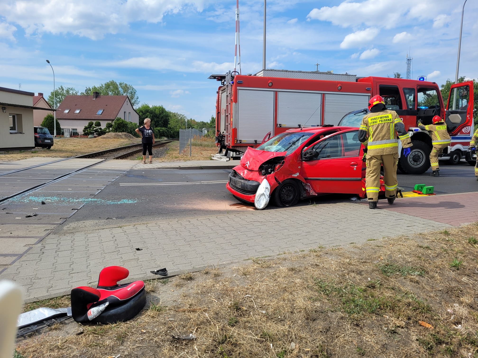 W dniu 29 lipca 2022 r. o godzinie 15:03 Dyżurny Stanowiska Kierowania Komendanta Powiatowego w Żarach otrzymał zgłoszenie o wypadku drogowym, gdzie jedna osoba została zakleszczona w samochodzie osobowym na ulicy Moniuszki w Żarach. Dyżurny Stanowiska Kierowania natychmiast zadysponował do zdarzenia trzy zastępy strażaków z Jednostki Ratowniczo-Gaśniczej Żary. Z chwilą przyjazdu pierwszego zastępu na miejsce wypadku okazało się, że w zdarzeniu brały udział trzy pojazdy. Samochód osobowy marki Citroen C1 uderzył w bok samochodu marki Ford Mondeo i koleinie uderzył czołowo w nadjeżdżający z naprzeciwka samochód dostawczy marki VW Transporter. W wyniku zderzenia, kierująca samochodem Citroen doznała obrażeń ciała i została przewieziona przez Zespół Ratownictwa Medycznego na SOR w Żarach, a jadący z nią pasażer został przetransportowany przez Lotnicze Pogotowie Ratunkowe do szpitala w Zielonej Górze. Pozostali uczestnicy biorący udział w wypadku zostali opatrzeni przez Zespół Ratownictwa Medycznego na miejscu. Działania zastępów Straży Pożarnej polegały na zabezpieczenie miejsca działań, pomocy w udzieleniu pomocy medycznej oraz zabezpieczeniu lądowiska dla Lotniczego Pogotowia Ratunkowego.