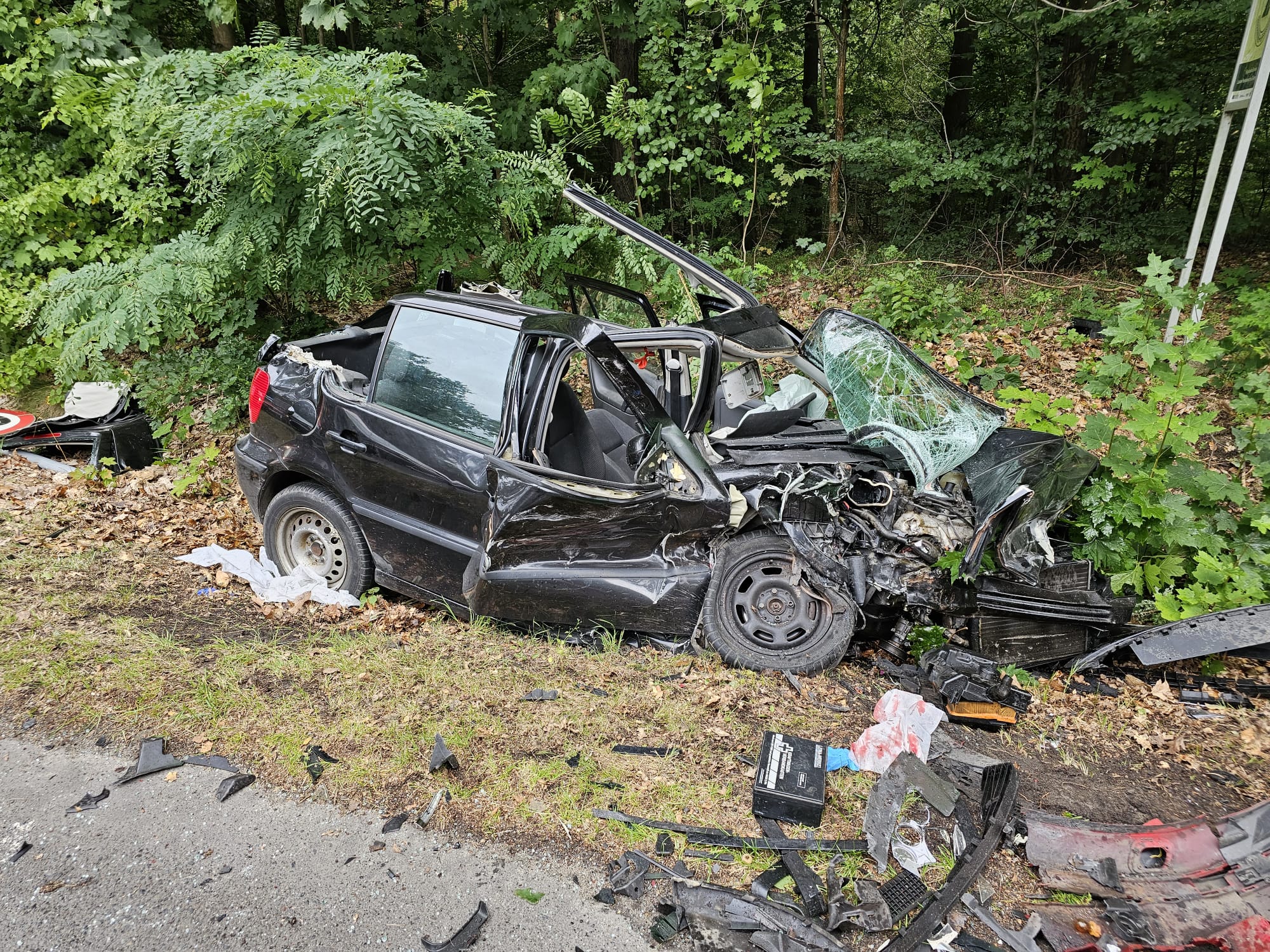Z chwilą przyjazdu pierwszego zastępu straży na miejsce zdarzenia zastano po zderzeniu czołowo-bocznym dwa samochody osobowe marki VW Polo oraz Seat Alahambra. Jedna osoba w samochodzie Seat była zakleszczona, trzy osoby z samochodu VW Polo znajdowały się na zewnątrz . Działania strażaków polegały na zabezpieczeniu miejsca zdarzenia, wykonaniu dostępu do osoby poszkodowanej i przekazaniu dla Zespołu Ratownictwa Medycznego oraz odłączeniu akumulatorów w pojazdach. Na miejscu działań był patrol Policji, Zarządca drogi. Cała interwencja trwała ponad 3 godziny.
