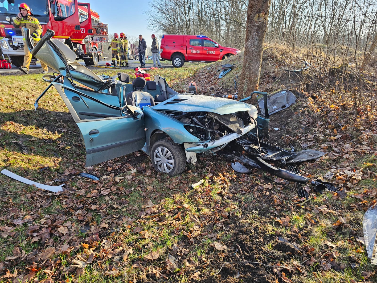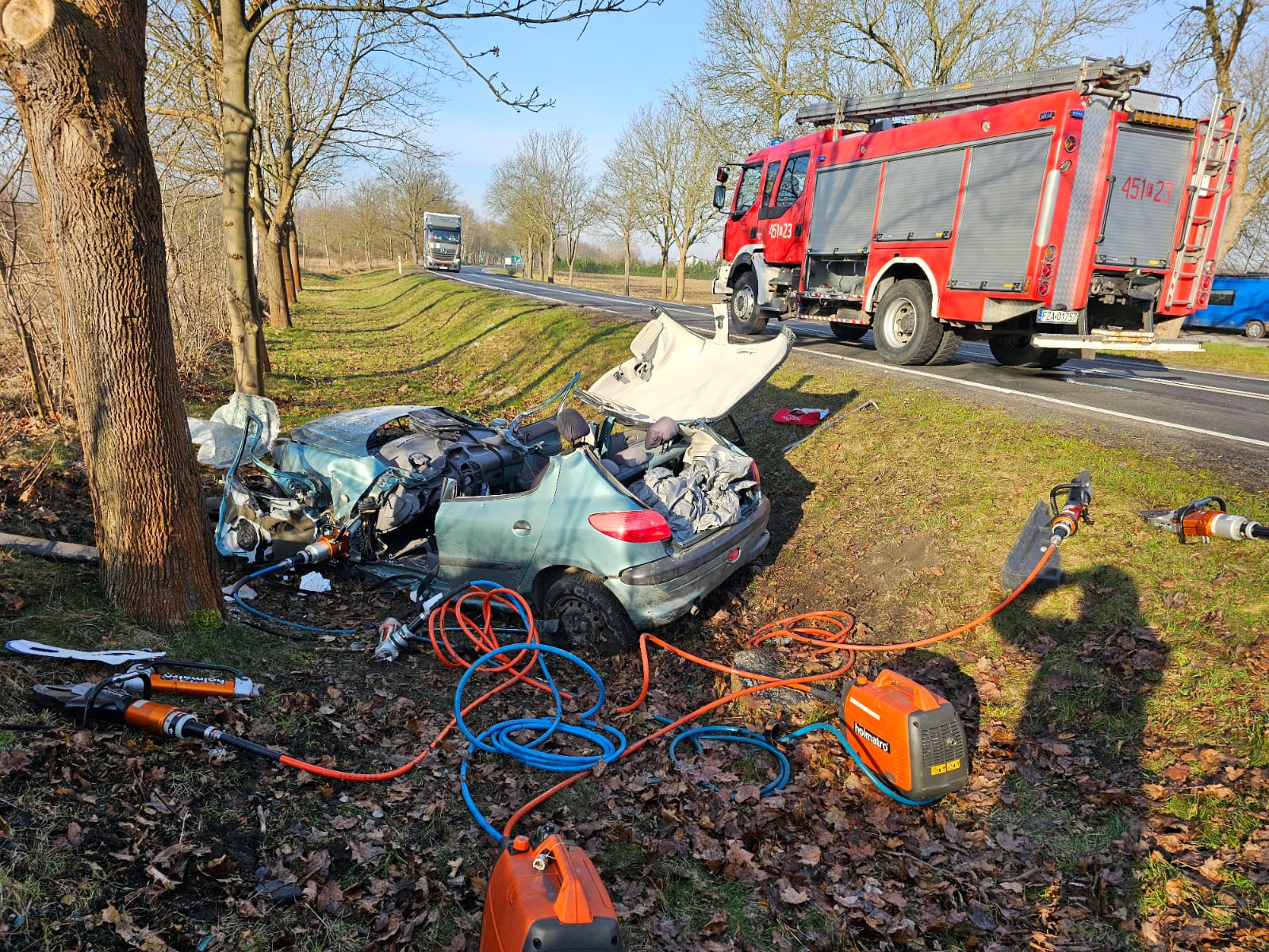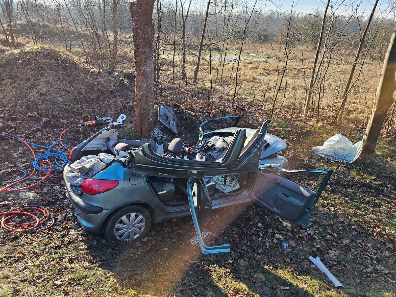 W dniu 26 lutego 2024 r. o godzinie 08:43 dyżurny Stanowiska Kierowania Komendanta Powiatowego Państwowej Straży Pożarnej w Żarach przyjął zgłoszenie o wypadku drogowym na drodze krajowej nr 12, pomiędzy Żarami a Sieniawą Żarską. Na miejsce zdarzenia natychmiast zadysponowano trzy zastępy z JRG Żary. Po przybyciu pierwszego zastępu na miejsce wypadku zastano samochód osobowy Peugeot 206 znajdujący się na kołach poza jezdnią. W samochodzie osobowym od strony kierowcy znajdowała się zakleszczona przytomna kobieta. Działania podjęte przez zastępy straży pożarnej polegały na zabezpieczeniu miejsca zdarzenia, wykonanie dostępu do poszkodowanej za pomocą narzędzi hydraulicznych, ewakuacji osoby poszkodowanej z pojazdu i przekazaniu dla Zastępu Ratownictwa Medycznego. Na miejscu działań obecne również były dwa patrole Policji. Cała interwencja trwała ponad 30 minut.