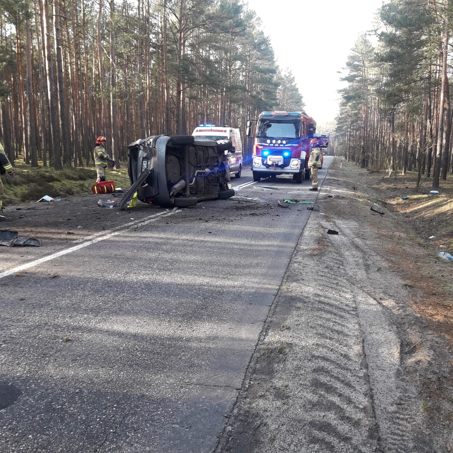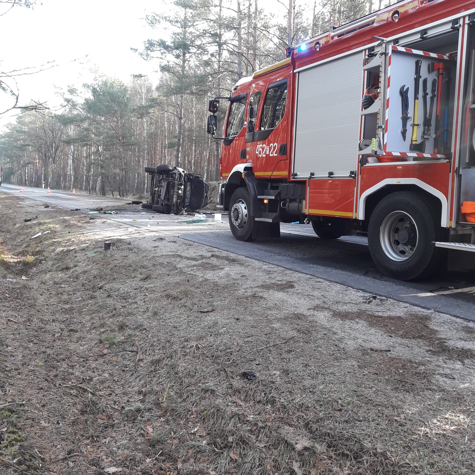 W dniu 26 lutego 2024 r. o godzinie 08:41 dyżurny Stanowiska Kierowania Komendanta Powiatowego Państwowej Straży Pożarnej w Żarach przyjął zgłoszenie o wypadku drogowym na drodze wojewódzkiej nr 287, na wysokości miejscowości Chocicz. Ze zgłoszenia wynikało, że samochód osobowy dachował. Dyżurny natychmiast na miejsce zdarzenia zadysponował dwa zastępy z JRG Lubsko oraz jeden zastęp z najbliższej jednostki Ochotniczej Straży Pożarnej Chocicz. Po przybyciu zastępów na miejsce zdarzenia zastano samochód osobowy marki Renault Scenic znajdujący się na boku na środku jezdni. Osoby poszkodowane opuściły pojazd o własnych siłach przed przybyciem JOP. W zdarzeniu brały udział dwie osoby: kobieta z dzieckiem. Działania podjęte przez zastępy straży pożarnej polegały na zabezpieczeniu miejsca zdarzenia, udzieleniu Kwalifikowanej Pierwszej Pomocy osobom poszkodowanym, które następnie zostały zabrane przez Zespół Ratownictwa Medycznego na Szpitalny Oddział Ratunkowy w Żarach. Cała interwencja trwała 2 godziny i 17 minut.