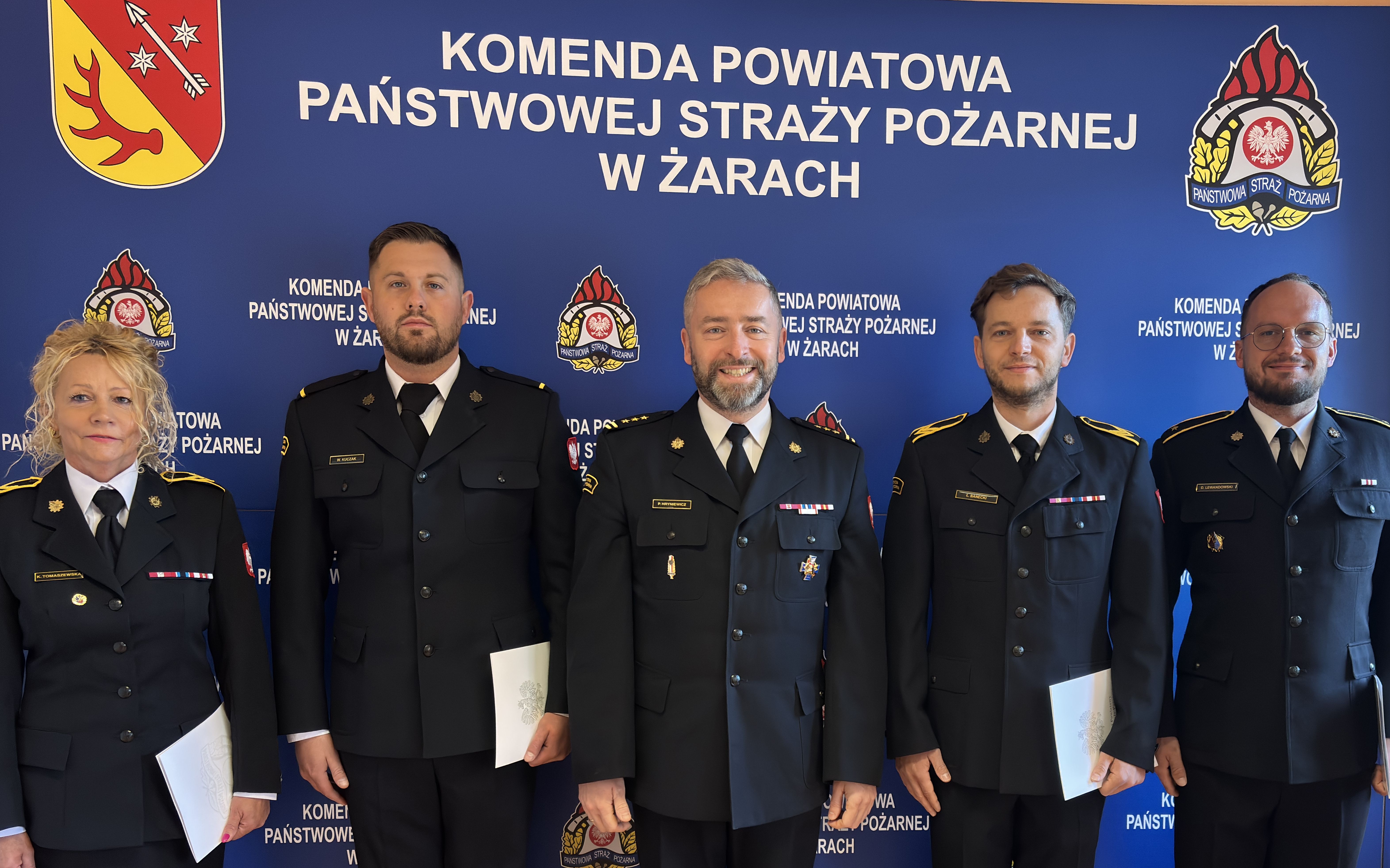 Asp. Dawid Lewandowski, st. ogn. Katarzyna Tomaszewska, st. ogn. Łukasz Banecki i st. str. Wojciech Kuczak otrzymali nagrody przyznane z inicjatywy nadbryg. Janusza Drozdy - Lubuskiego Komendanta Wojewódzkiego PSP ze środków finansowych, zwiększających fundusz nagród Komendy Powiatowej PSP w Żarach, przyznanych decyzją Wojewody Lubuskiego.