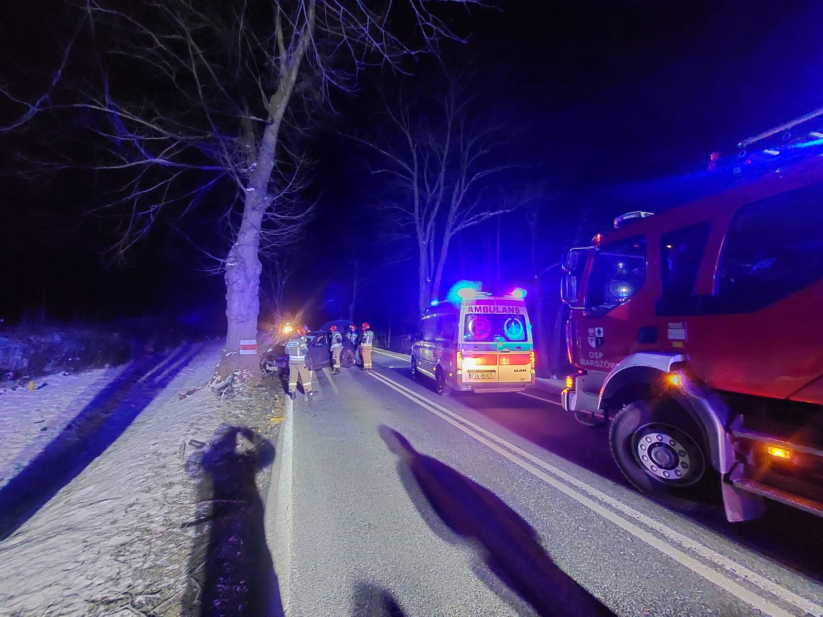 20 lutego 2025 r. o godzinie 19:00 dyżurny Stanowiska Kierowania Komendanta Powiatowego PSP w Żarach przyjął zgłoszenie o zdarzeniu drogowym z udziałem samochodu elektrycznego na DK 12 za miejscowością Marszów. Do zdarzenia zadysponowane zostały zastępy z JRG PSP w Żarach oraz jednostka OSP Marszów.