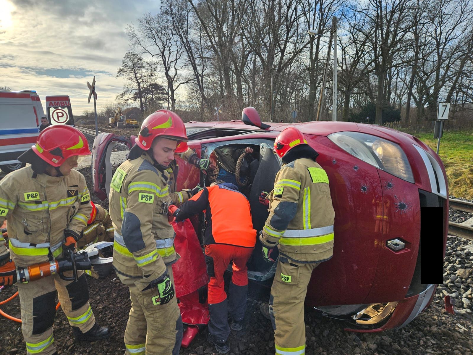 Na miejsce natychmiast zadysponowane zostały dwa zastępy z JRG Żary. Po dotarciu strażacy zastali samochód osobowy z dwiema uwięzionymi osobami poszkodowanymi po zderzeniu z pociągiem osobowym, którym podróżowało 70 osób. Działania zastępów polegały na zabezpieczeniu miejsca zdarzenia, stabilizacji pojazdu oraz jak najszybszym wykonaniu dostępu do poszkodowanych i ich ewakuacji. Osoby poszkodowane po przebadaniu przez ZRM pozostały na miejscu zdarzenia. Nikt z osób podróżujących pociągiem nie odniósł obrażeń w wyniku zdarzenia. W akcji uczestniczyły Zespoły Ratownictwa Medycznego, Policja oraz Straż Ochrony Kolei.