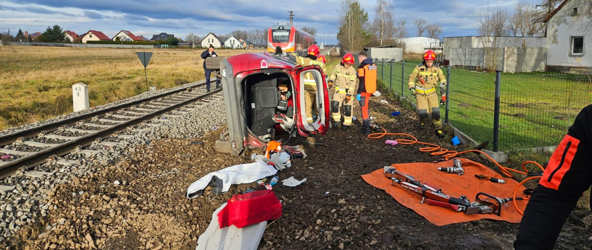 21 grudnia 2024 roku o godzinie 11:19 dyżurny Stanowiska Kierowania Komendanta Powiatowego Państwowej Straży Pożarnej w Żarach otrzymał zgłoszenie o zderzeniu samochodu osobowego z pociągiem na przejeździe kolejowym w miejscowości Grabik.