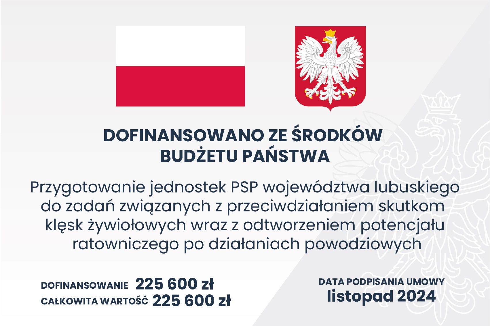 Komenda Powiatowa Państwowej Straży Pożarnej w Żarach zrealizowała zadanie pod nazwą: „Przygotowanie jednostek PSP województwa lubuskiego do zadań związanych z przeciwdziałaniem skutkom klęsk żywiołowych wraz z odtworzeniem potencjału ratowniczego po działaniach powodziowych”.