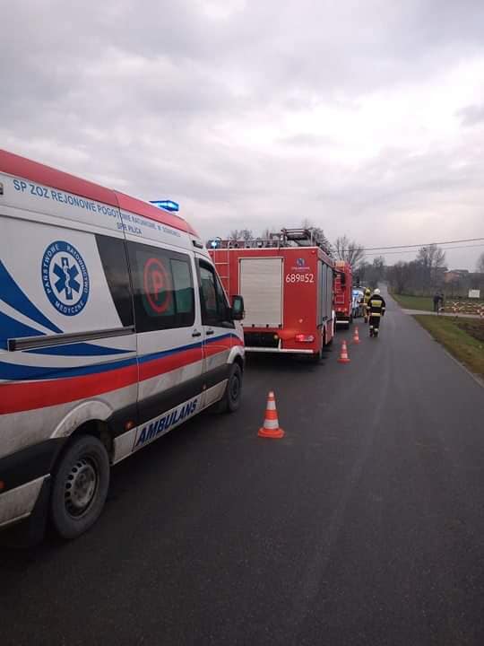 Stanowisko Kierowania przyjęło zgłoszenie z WCPR następującej treści: na krzyżowce- przy wjeździe do Wierzbica jadąc od Kleszczowej- zderzenie 2 samochody osobowe, 1 osoba poszkodowana - kobieta znajduje się w pojeździe który dachował - zadymienie. Po przyjeździe na miejsce zdarzenia KDR stwierdził dwa samochody osobowe po zderzeniu. Oba znajdowały się poza jezdnią. Jeden na dachu.