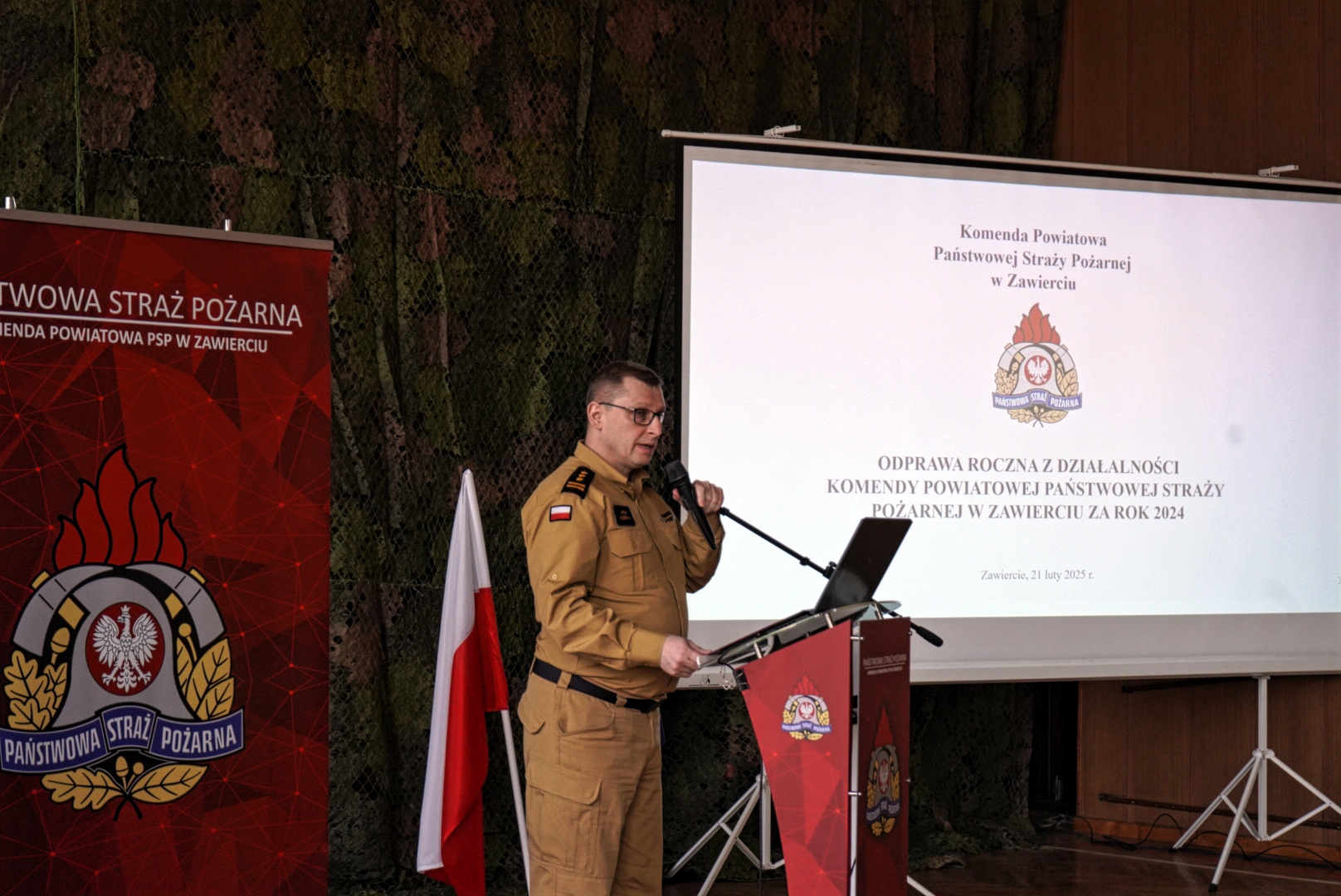 W dniu 21 lutego 2025 roku w Komendzie Powiatowej Państwowej Straży Pożarnej w Zawierciu odbyło się spotkanie podsumowujące działalność w 2024 roku. W odprawie uczestniczyło kierownictwo, funkcjonariusze oraz pracownicy komendy, jak również zaproszenii goście.