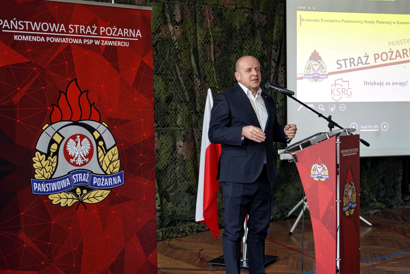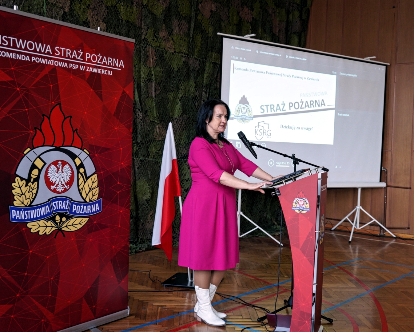 Komendant Powiatowy st. bryg. Artur Łągiewka przedstawił informacje dotyczące działalności Komendy Powiatowej PSP w Zawierciu w roku 2024 oraz główne kierunki działań i cele wyznaczone dla zawierciańskiej Komendy na rok 2025. Skierował słowa podziękowania dla władz samorządowych dziękując za całoroczną współpracę.