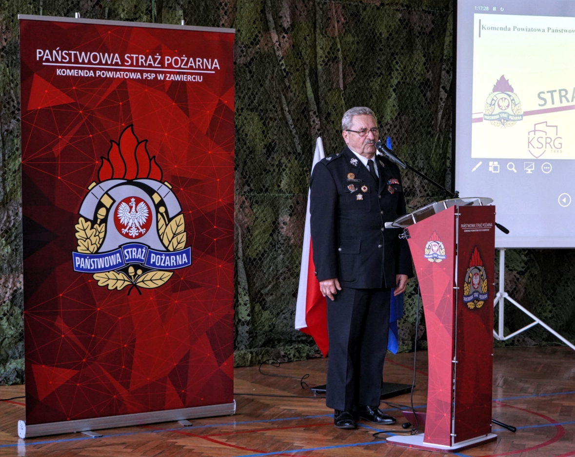 Uroczystość rozpoczęła się od złożenia meldunku Komendantowi Powiatowemu Państwowej Straży Pożarnej w Zawierciu przez dowódcę uroczystość st. kpt. Karola Skorupę.