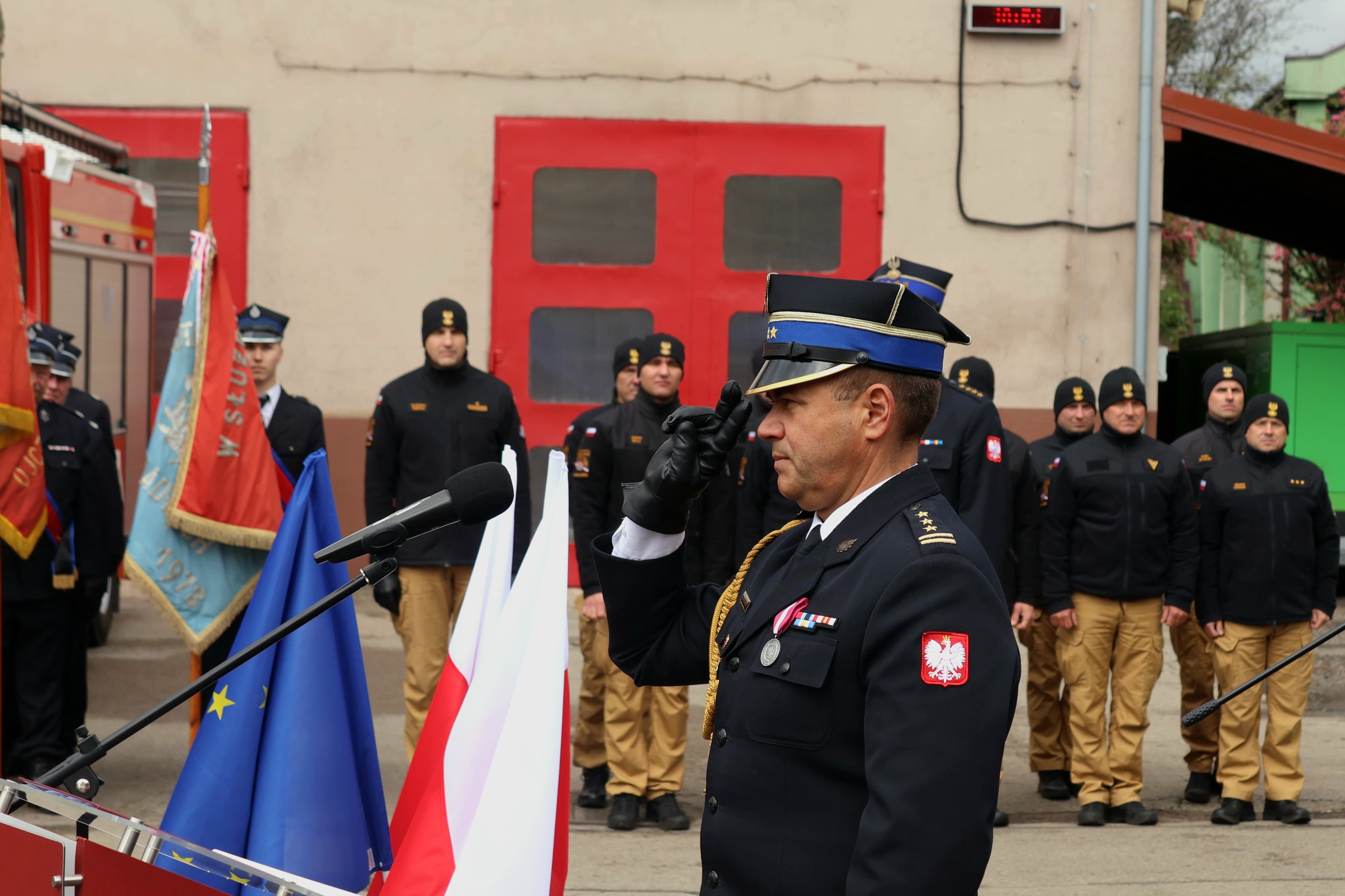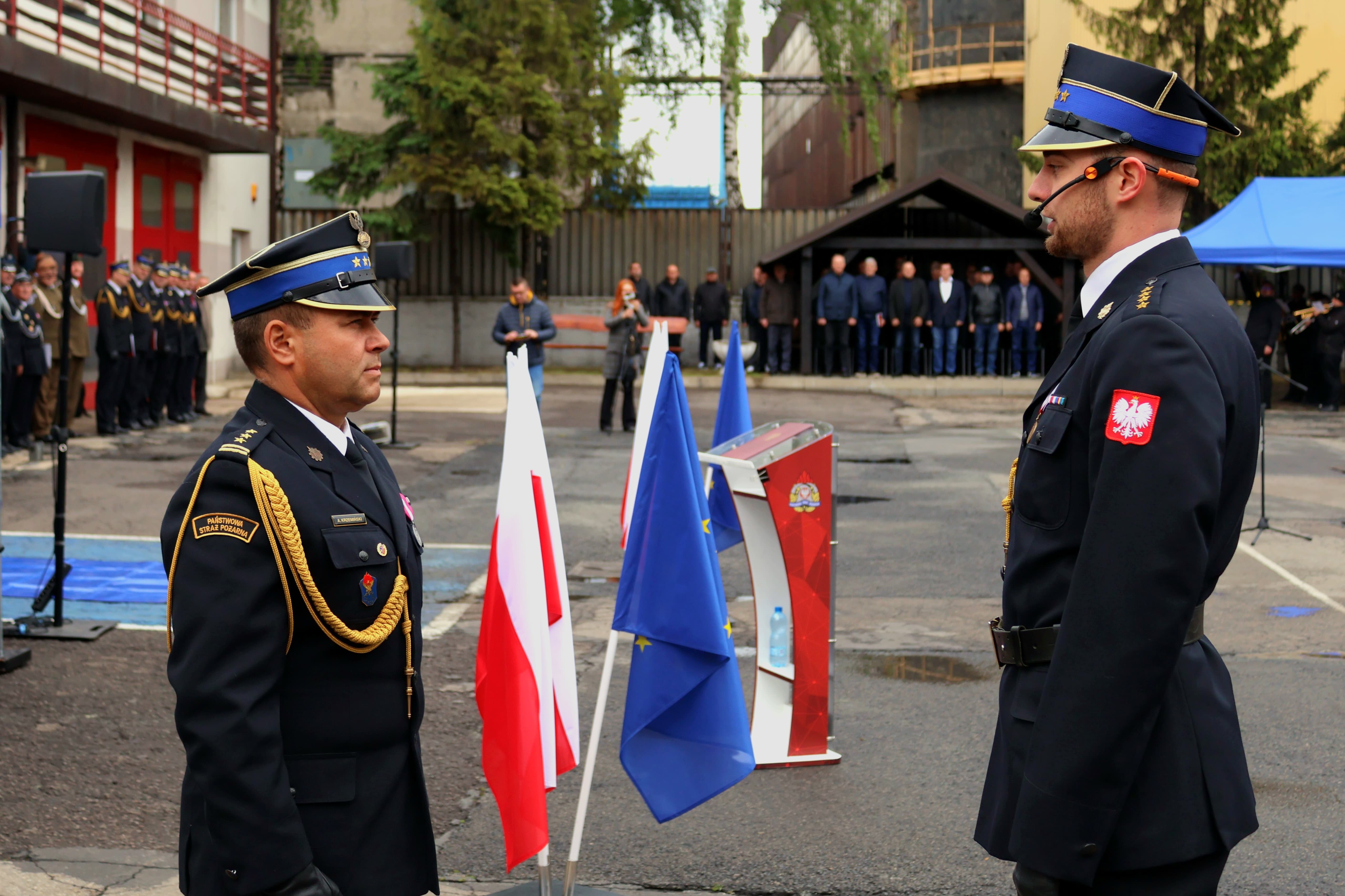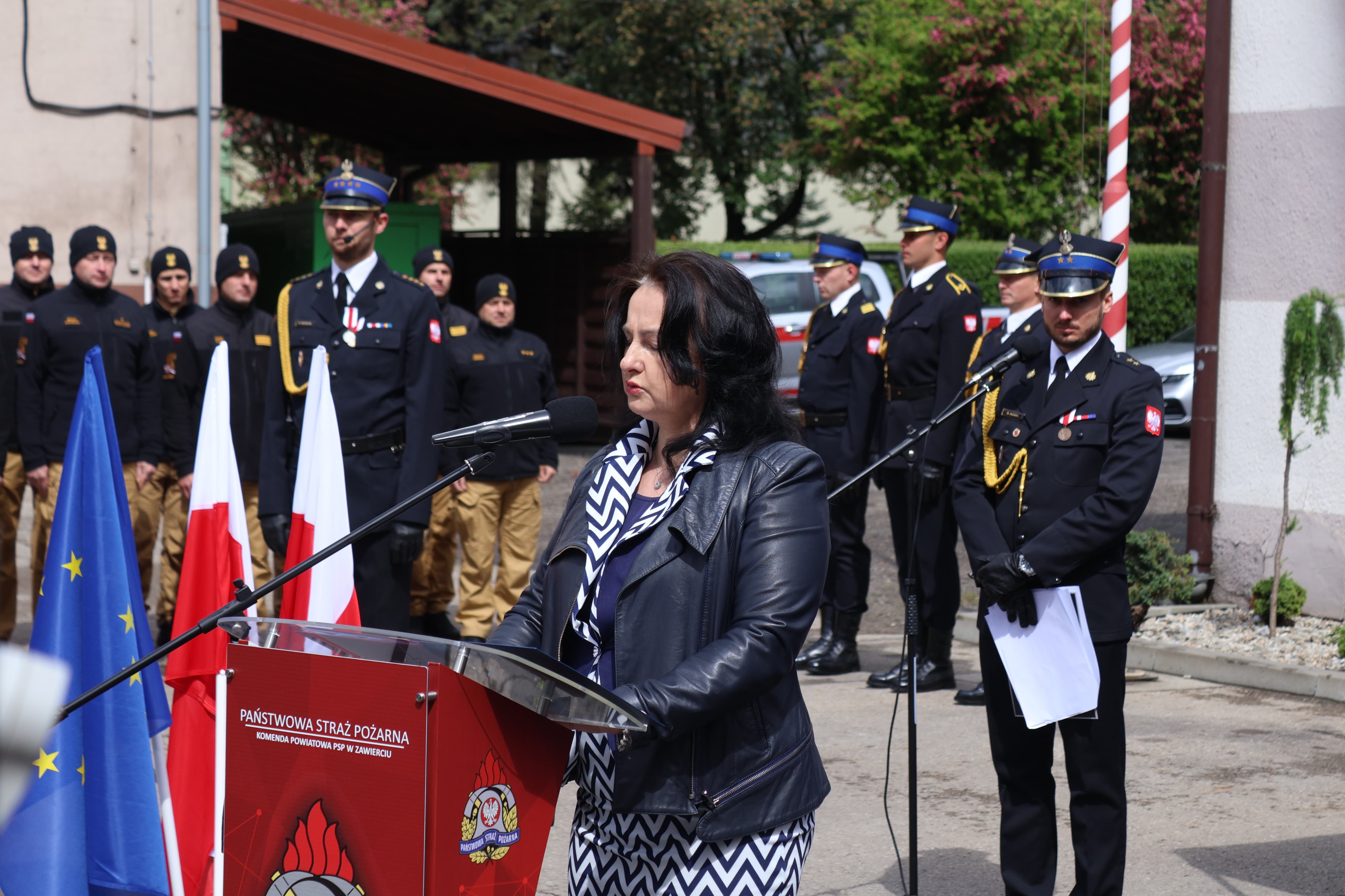 Uroczystość rozpoczęła się złożeniem meldunku przez dowódcę uroczystości st. kpt. Karola Skorupę, Zastępcy Śląskiego Komendanta Wojewódzkiego Państwowej Straży Pożarnej st. bryg. Arkadiuszowi Krzemińskiemu. Po podniesieniu flagi państwowej i odegraniu hymnu państwowego głos zabrał Komendant Powiatowy Państwowej Straży Pożarnej w Zawierciu, witając zaproszonych gości oraz dziękując strażakom za ich codzienną służbę. Byłą to również okazja do złożenia życzeń i gratulacji wszystkim awansowanym i odznaczonym.