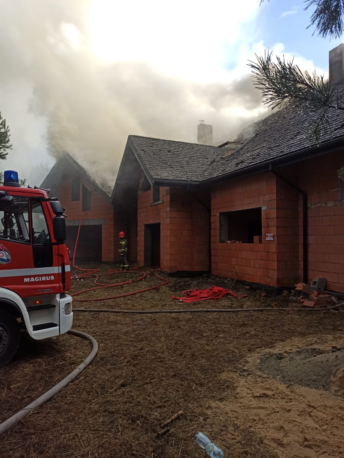 W sobotę 23 października o godzinie 14:03 do Stanowiska Kierowania Komendanta Powiatowego Państwowej Straży Pożarnej w Zawierciu wpłynęło zgłoszenie o pożarze dachu budynku jednorodzinnego. Po dojeździe na miejsce zastępów Straży Pożarnej, stwierdzono iż pożarem objęty jest dach budynku w budowie. Działania Straży Pożarnej polegały na :