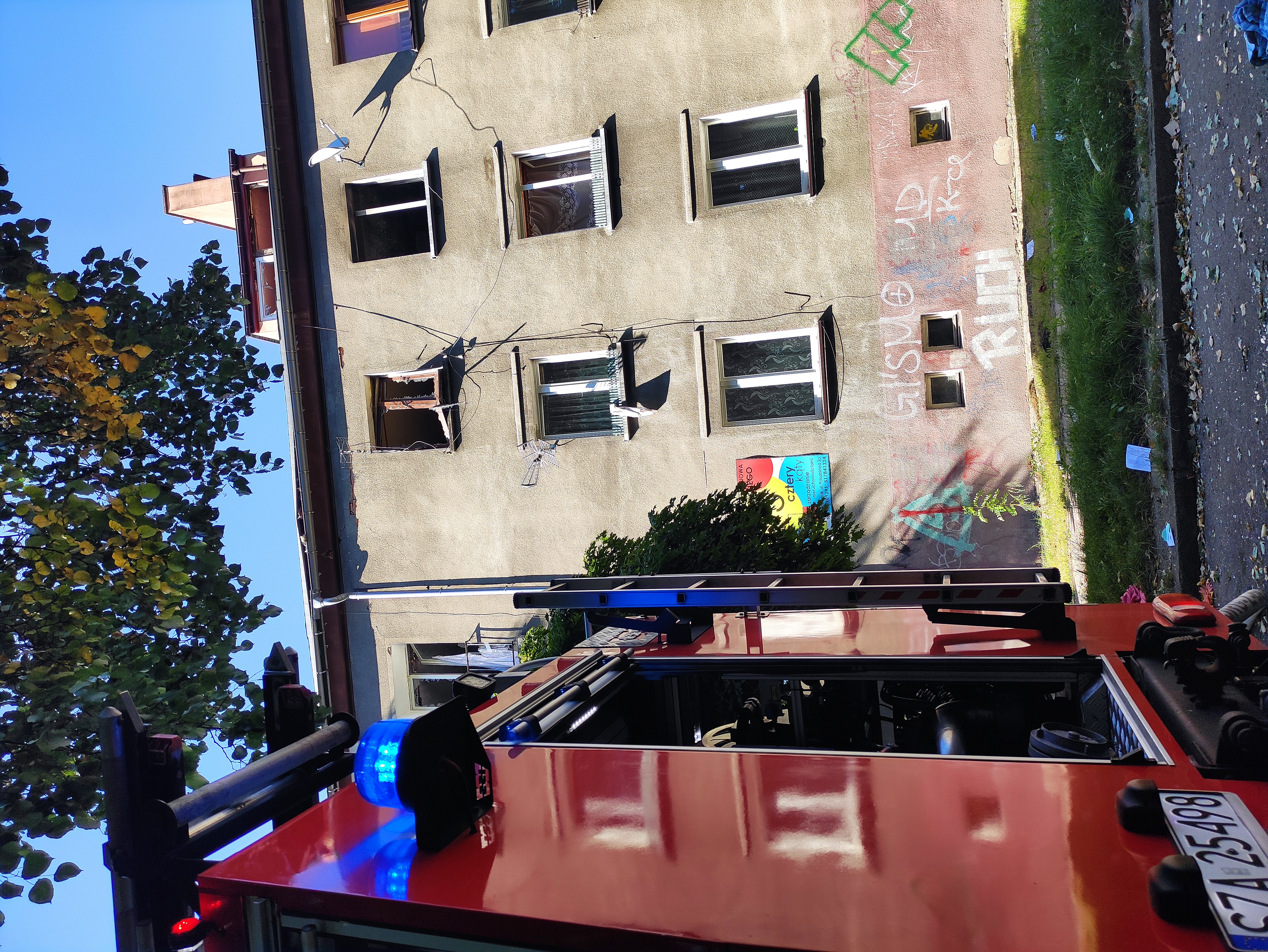 - podaniu jednego prądu gaśniczego wody na mieszkanie objęte pożarem,