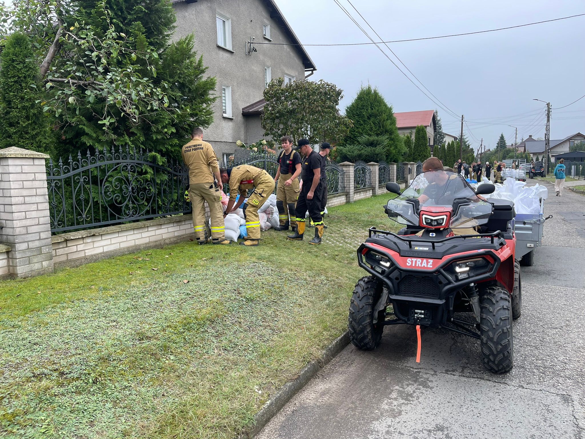 Działania strażaków polegały na budowaniu wałów przeciwpowodziowych z worków z piaskiem oraz doraźnym zabezpieczaniu otworów okiennych i drzwiowych w zagrożonych budynkach jednorodzinnych. Działania na miejscu kompania zawiercie prowadziła wspólnie z kompania odwodową nr 1 - Będzin. Dziękujemy za współpracę!