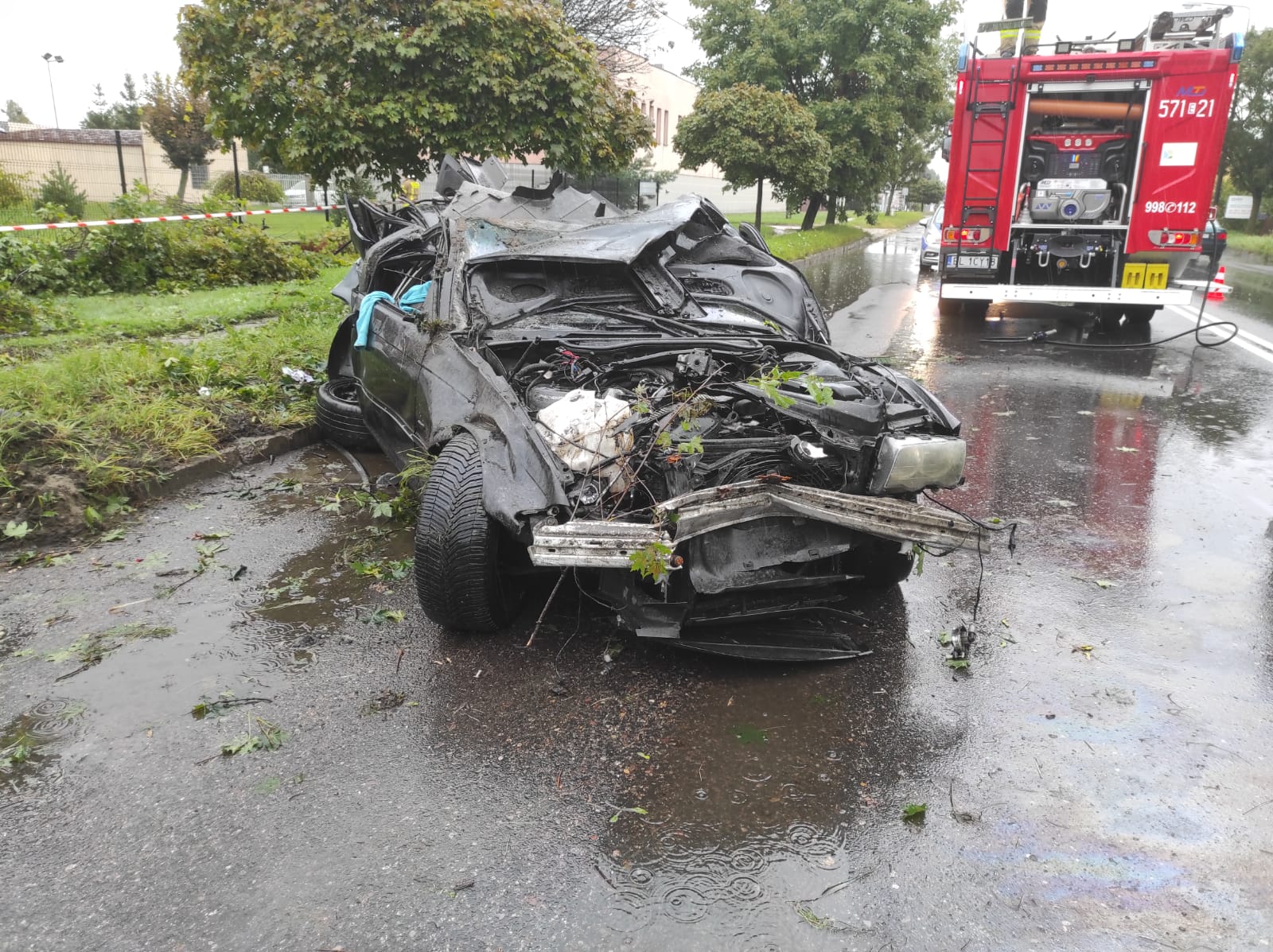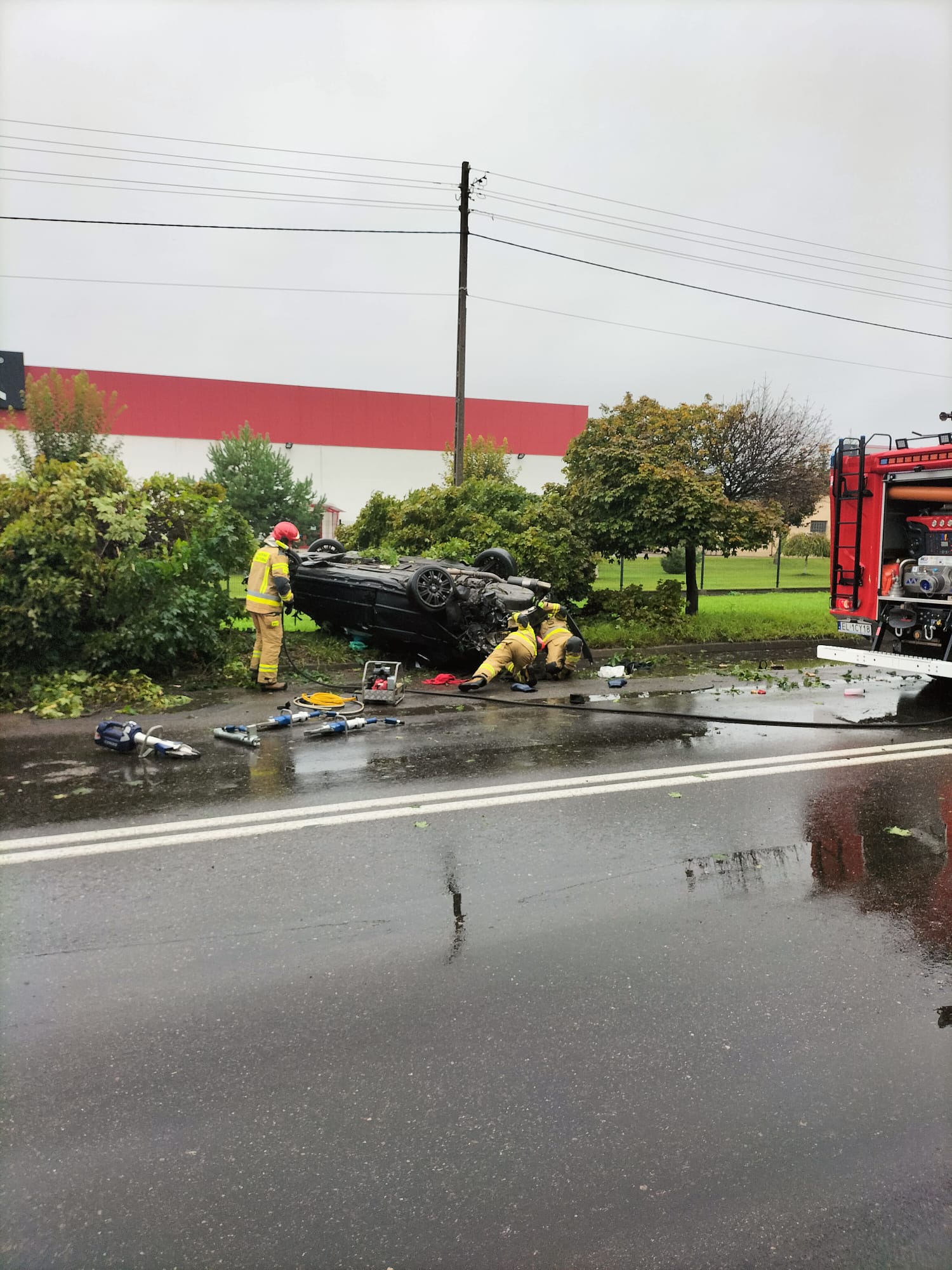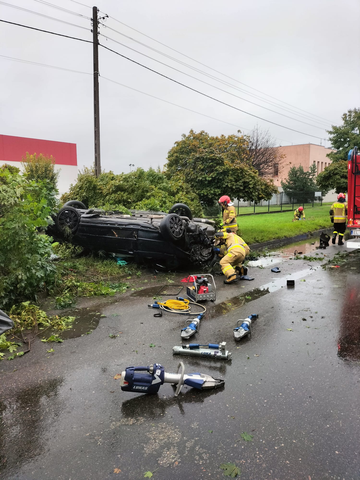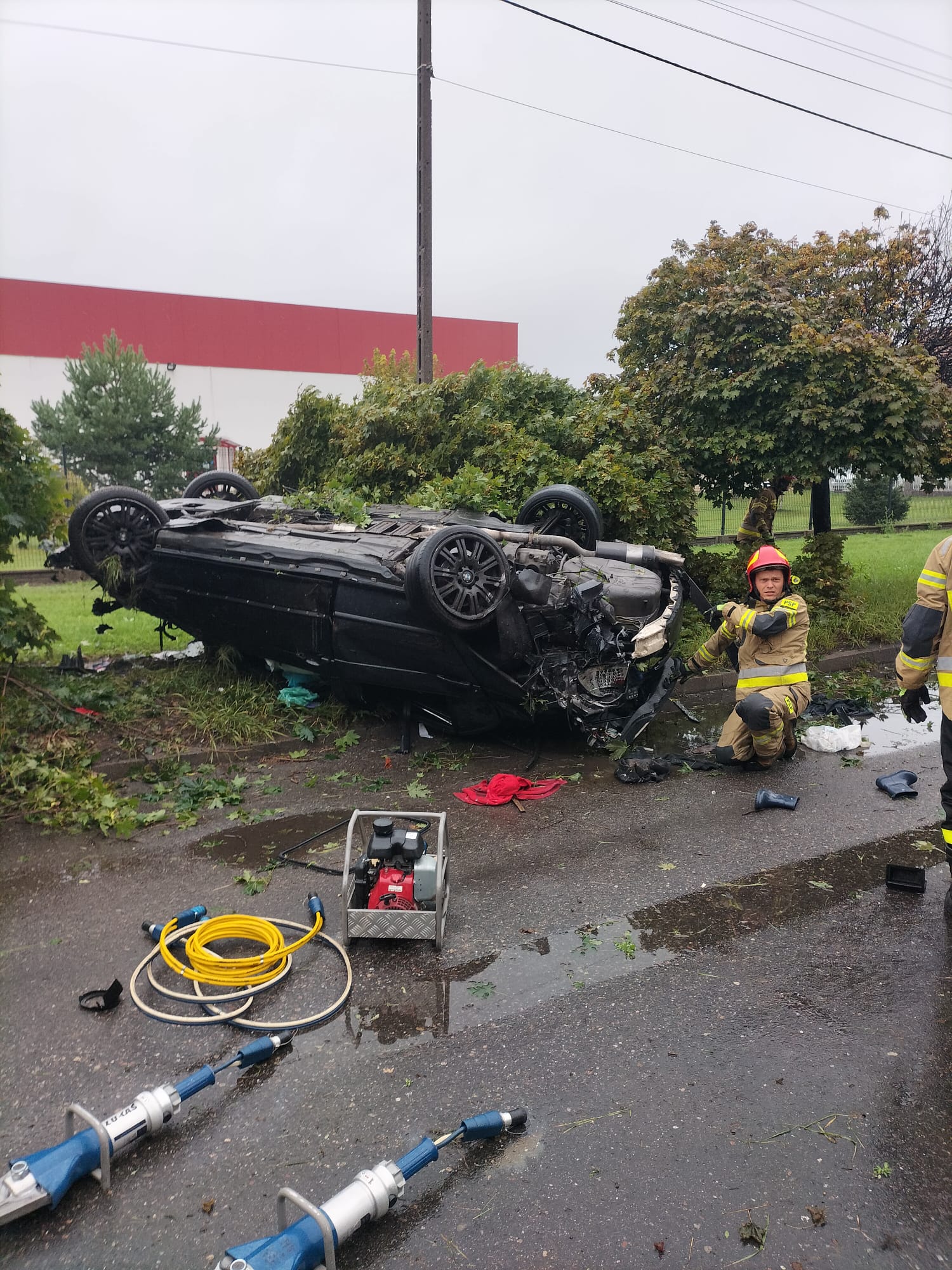 W dniu 11.09.2022 r. o godz. 09:36 dostaliśmy zgłoszenie o dachowaniu pojazdu na ul. Łaskiej w Zduńskiej Woli, do którego zadysponowano dwa zastępy z JRG PSP w Zduńskiej Woli. Na miejscu strażacy zastali uszkodzony samochód osobowy po uderzeniu w drzewo i dachowaniu bez osób pozostających w środku. Kierowca sam opuścił pojazd przed przybyciem służb. Działania strażaków polegały na zabezpieczeniu miejsca zdarzenia, udzieleniu kwalifikowanej pierwszej pomocy osobie poszkodowanej, dokonaniu sorpcji rozlanych płynów eksploatacyjnych.