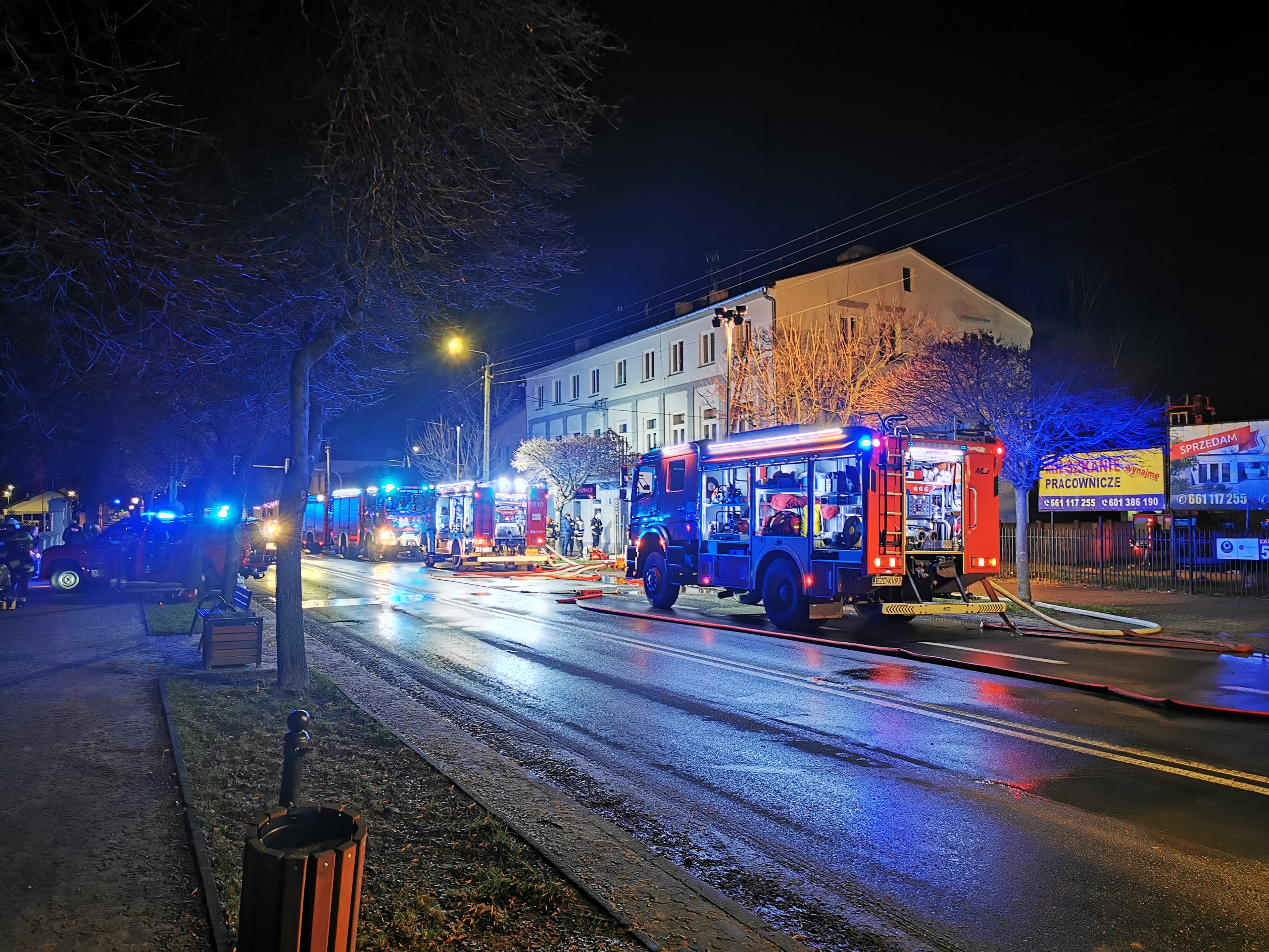 W dniu 13.01.2023 r. o godzinie 00:30 dostaliśmy zgłoszenie o zadymieniu na klatce schodowej w budynku wielorodzinnym w Zduńskiej Woli przy ulicy Łaskiej. Na miejsce zadysponowano 3 zastępy z JRG w Zduńskiej Woli oraz 1 zastęp z OSP. Po dojechaniu na miejsce dowódca zmiany wstępnie potwierdził zgłoszenie. W wyniku dalszego rozpoznania ustalił, że pożarem objęte jest mieszkanie na drugim piętrze i potrzebne są dodatkowe siły i środki. Na miejsce łącznie zadysponowano 4 zastępy z JRG PSP w Zduńskiej Woli oraz 7 zastępów z OSP z terenu powiatu zduńskowolskiego. W wyniku zdarzenia poszkodowanych zostało 7 osób (w tym 2 osoby śmiertelne, 5 osób zabranych przez ZRM do szpitali w regionie), pozostali mieszkańcy kamienicy nie wymagali udzielenia kwalifikowanej pierwszej pomocy. Po opuszczeniu budynku zostali wstępnie zebrani w podstawionym przez MPK autobusie na miejscu zdarzenia, następnie rozlokowani w miejscach tymczasowego pobytu. Działania strażaków polegały na zabezpieczeniu miejsca zdarzenia, ewakuacji mieszkańców, udzieleniu kwalifikowanej pierwszej pomocy osobą poszkodowanym, ugaszeniu pożaru przy użyciu 3 prądów wody, sprawdzeniu wszystkich pomieszczeń.