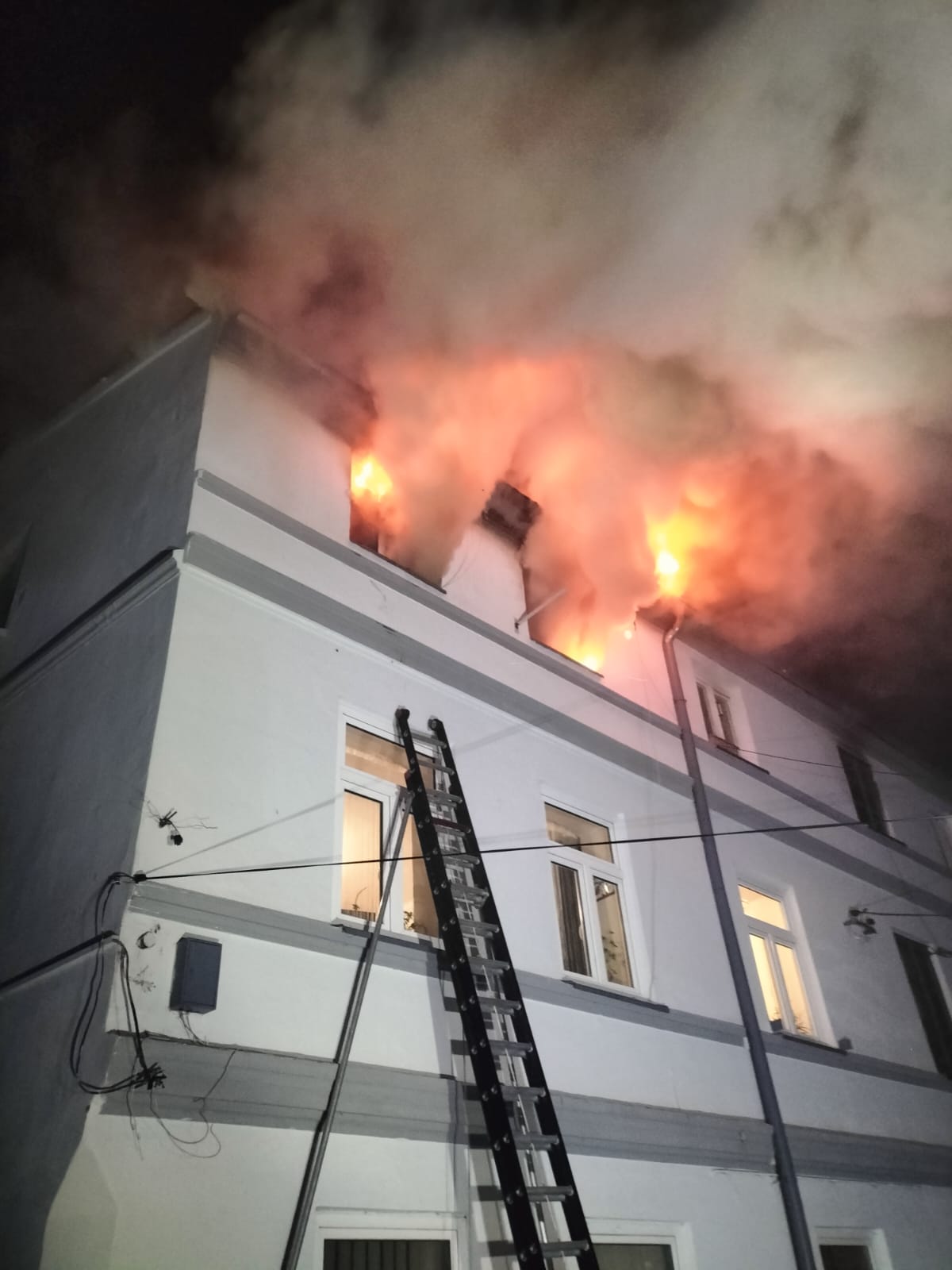 13.01.2023 r. - Pożar kamienicy, Zduńska Wola ul. Łaska