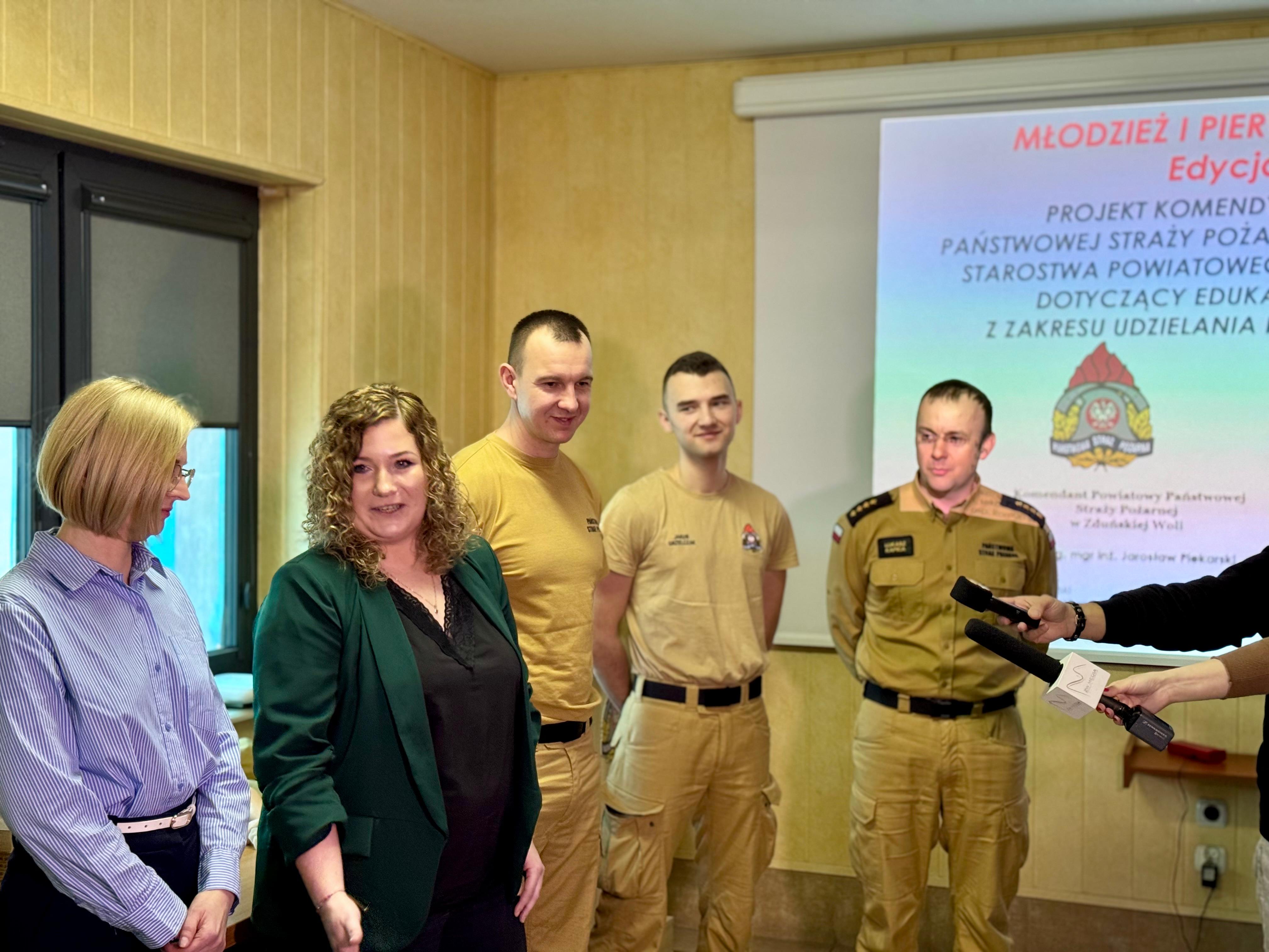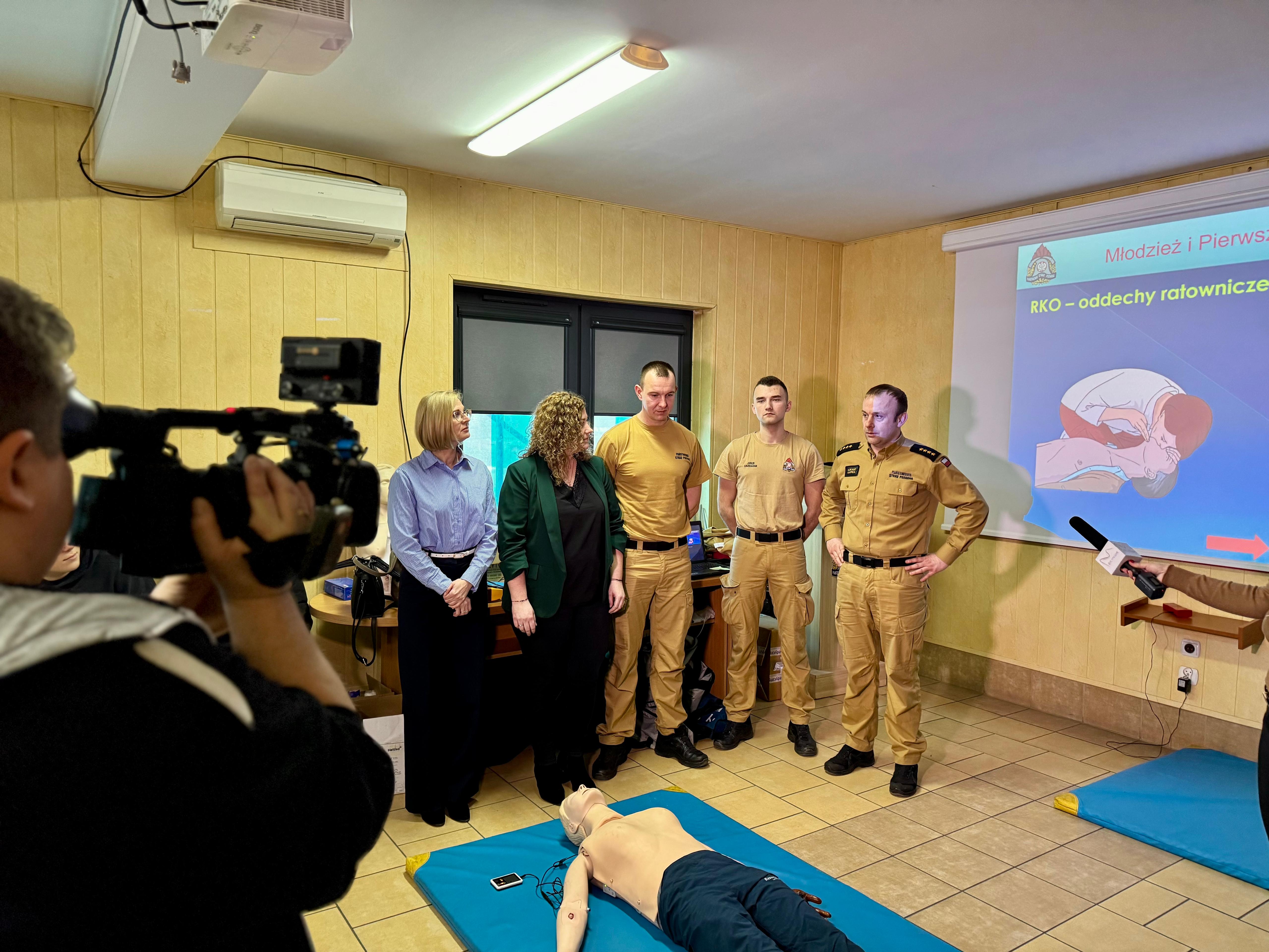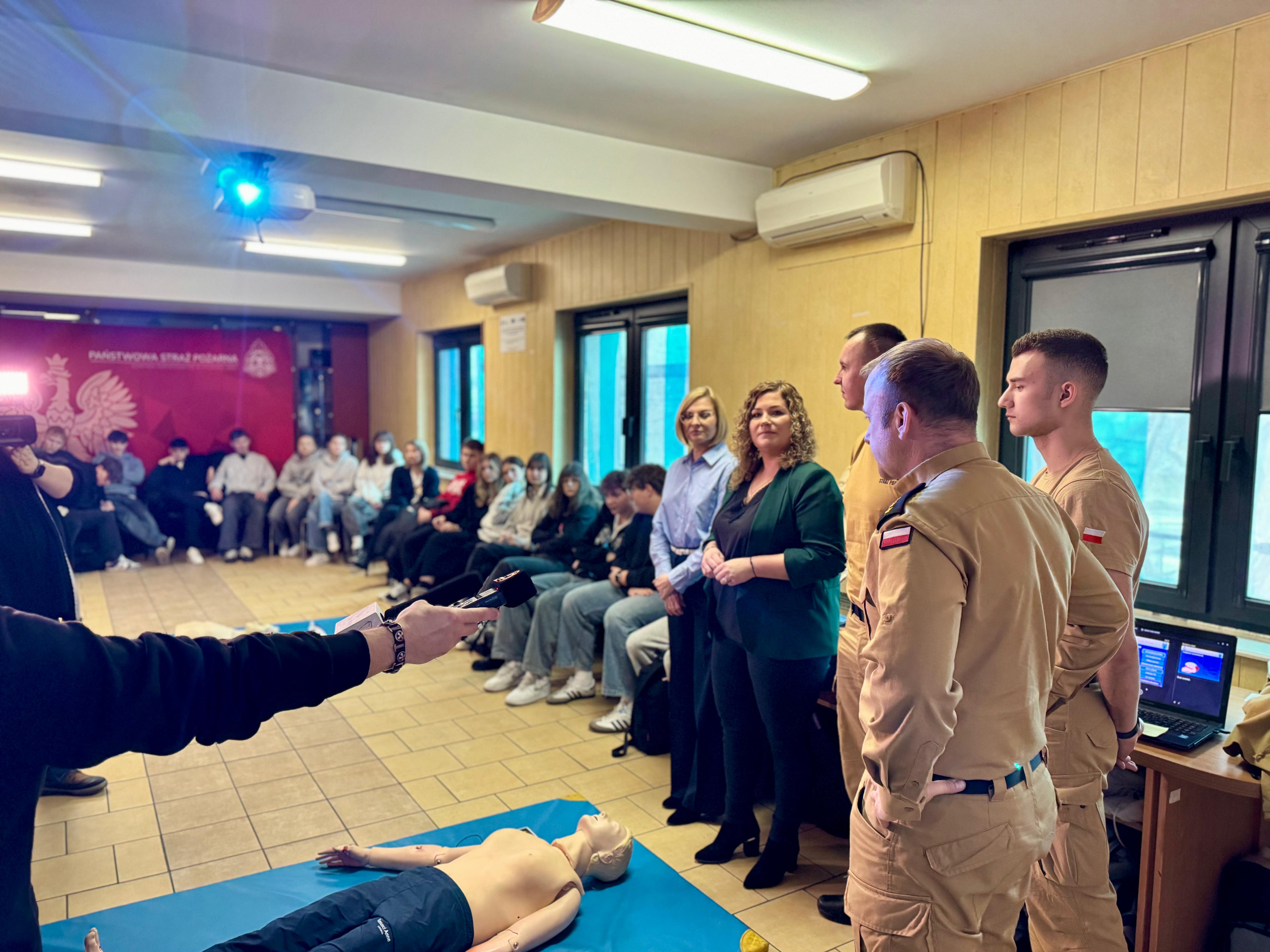 W dniu 03 marca 2025 r. o godzinie 10:00 w siedzibie Komendy Powiatowej PSP w Zduńskiej Woli oficjalnie rozpoczęła się piętnasta edycja wspólnego projektu Komendy Powiatowej Państwowej Straży Pożarnej w Zduńskiej Woli oraz Starostwa Powiatowego pn. "Młodzież i pierwsza pomoc". Każdego roku w projekcie bierze udział około 700 uczniów z przedostatnich klas szkół średnich oraz kadry dydaktycznej z powiatu zduńskowolskiego. Dotychczas z naszej inicjatywy skorzystało już kilkanaście tysięcy młodych osób, które dzięki zdobytej wiedzy mogą skutecznie reagować w sytuacjach wymagających natychmiastowej pomocy. Podczas szkoleń uczniowie zapoznają się z procedurami udzielania pierwszej pomocy. Program zawiera przede wszystkim praktyczne zajęcia z prowadzenia resuscytacji krążeniowo-oddechowej, obsługi defibrylatora AED, oraz m.in. pokazuje sposoby reagowania przy zadławieniach lub oparzeniach. Na zajęciach młodzież dowiaduje się także jak w praktyce wykorzystać zdobytą wiedzę. Strażacy wyjaśniają na przykład jak skutecznie wezwać pomoc i jak rozmawiać z dyspozytorem numeru alarmowego. Główny nacisk kładziemy na zajęcia praktyczne, co znacząco podnosi skuteczność nauki i zwiększa szanse na uratowanie życia w sytuacjach kryzysowych. Program został doceniony przez uczestników oraz lokalne społeczności, stając się jednym z kluczowych działań profilaktycznych w regionie.