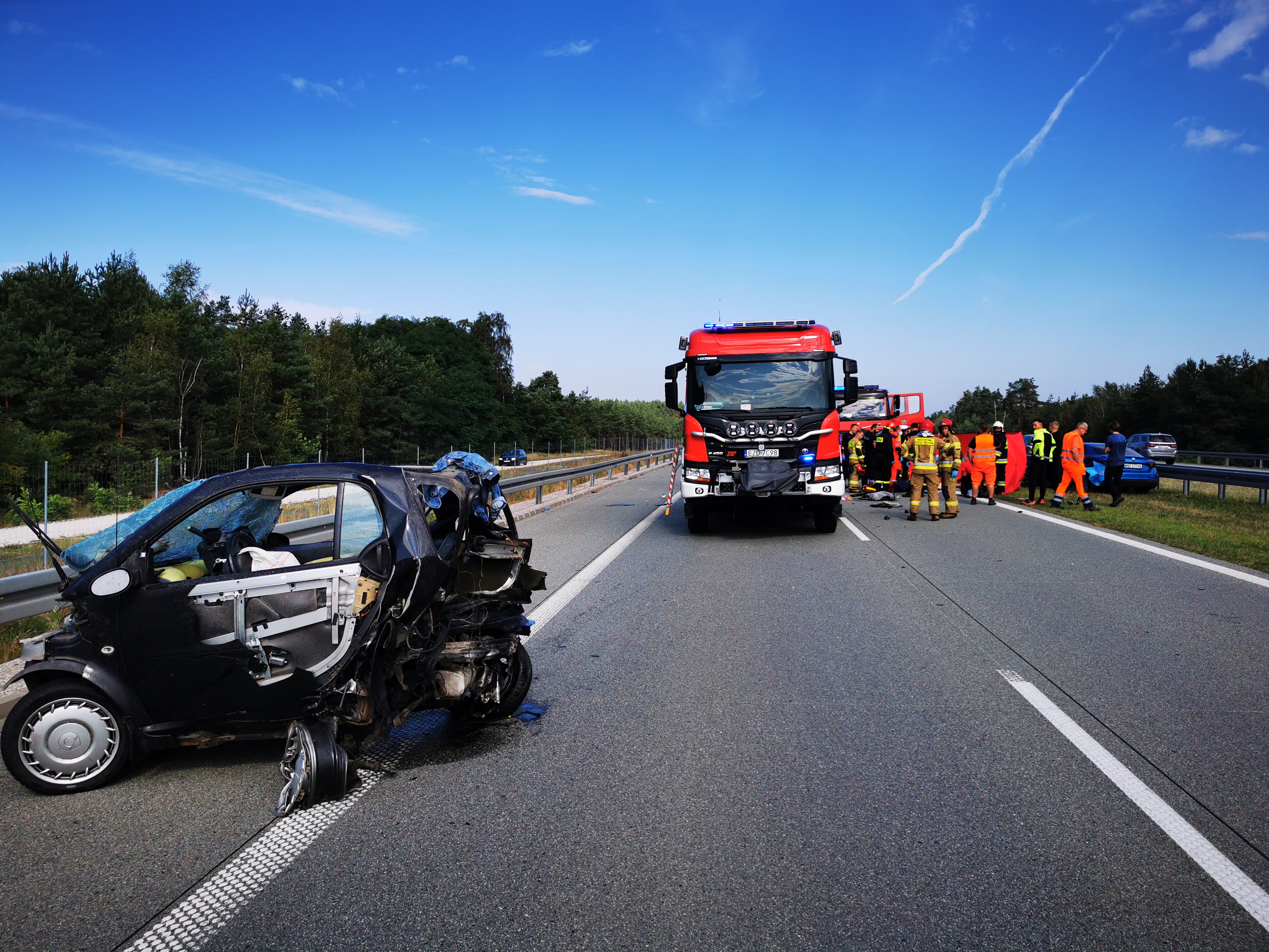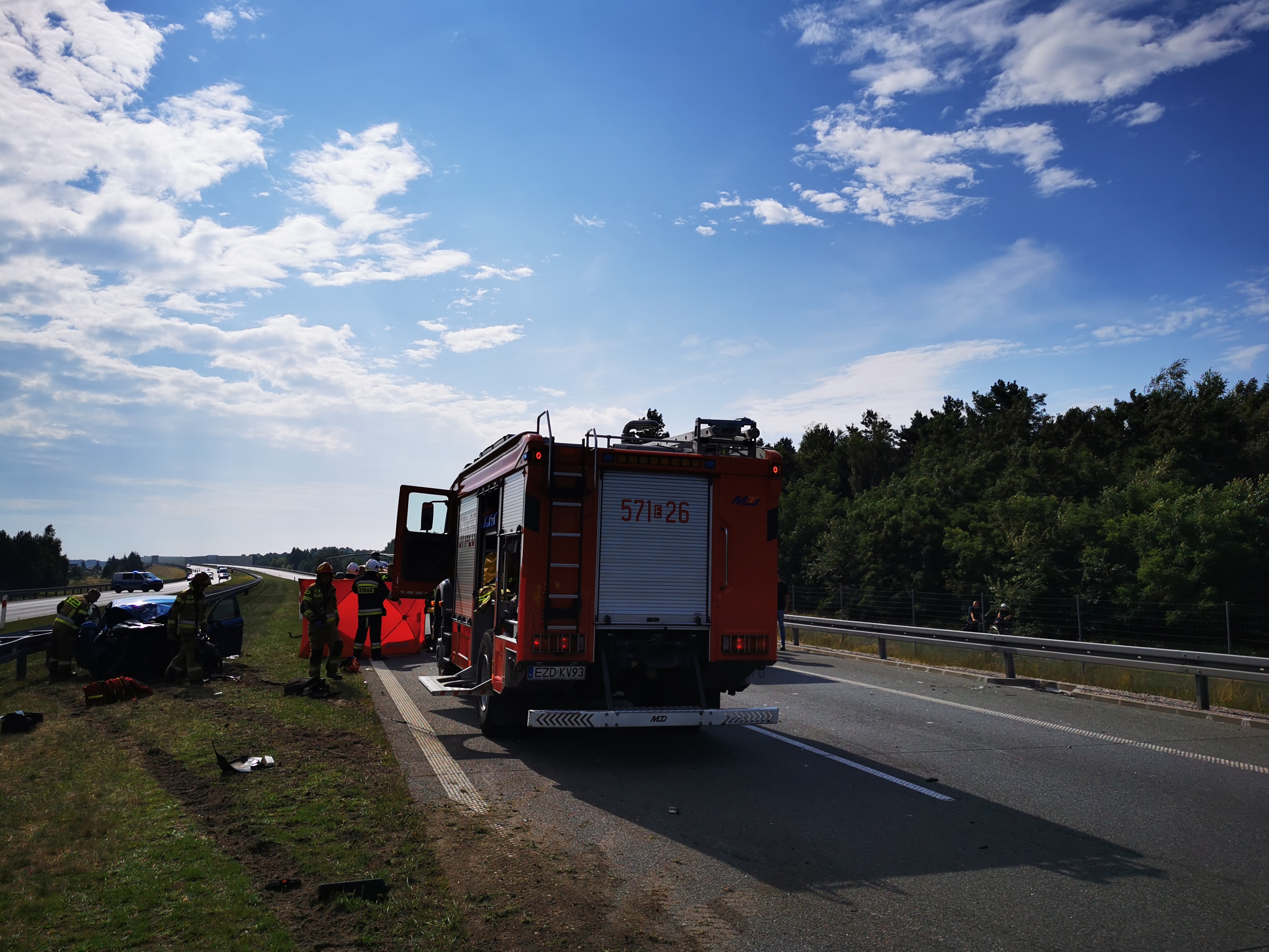 Działania strażaków polegały na zabezpieczeniu miejsca zdarzenia, udzieleniu kwalifikowanej pierwszej pomocy osobie poszkodowanej, zabezpieczeniu lądowiska dla LPR. Samochodem marki Smart podróżowała kobieta wraz z psem, która pomimo wcześnie rozpoczętej resuscytacji krążeniowo oddechowej przez świadków zdarzenia i kontynuowanej przez strażaków, ZRM oraz lekarza z LPR nie przeżyła. Pies został zabrany przez weterynarza na obserwację. Drugim pojazdem marki Alfa Romeo podróżował mężczyzna, który nie uskarżał się na dolegliwości związane ze zdarzeniem.