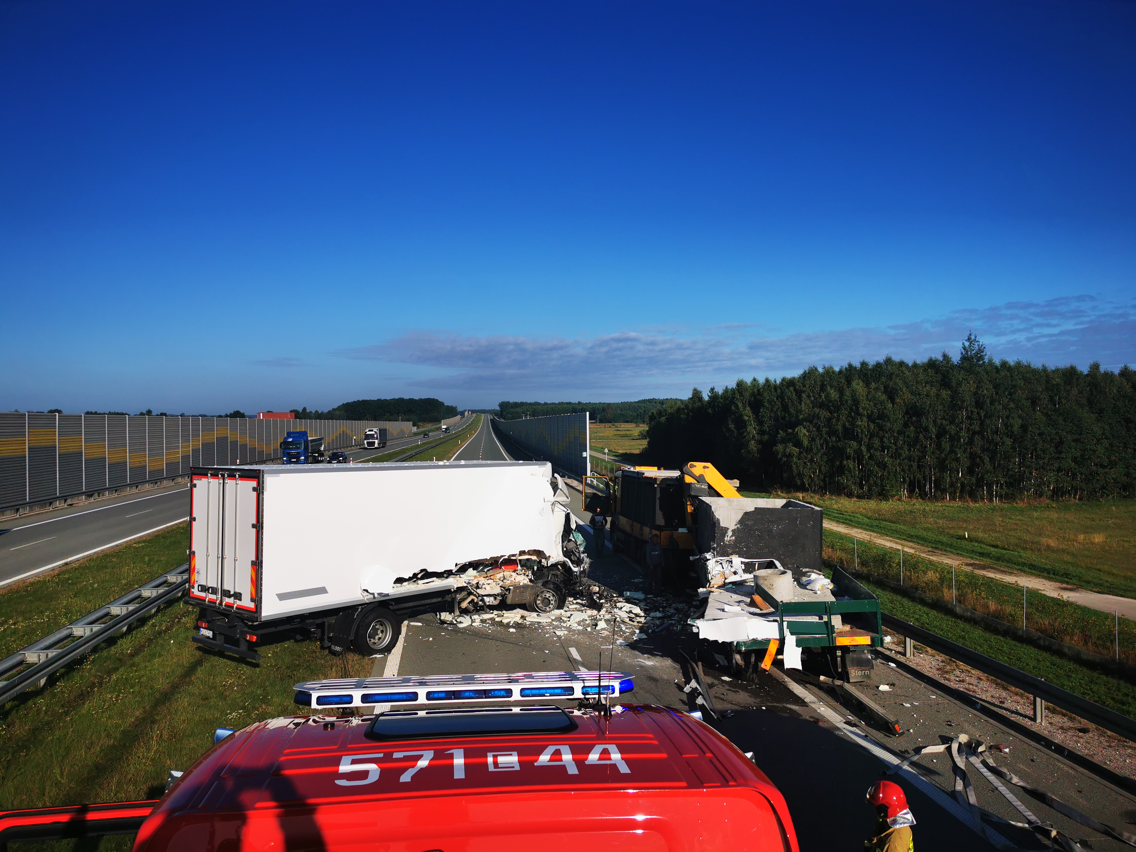 25.08.2021 - zderzenie 2 samochodów ciężarowych - trasa S8