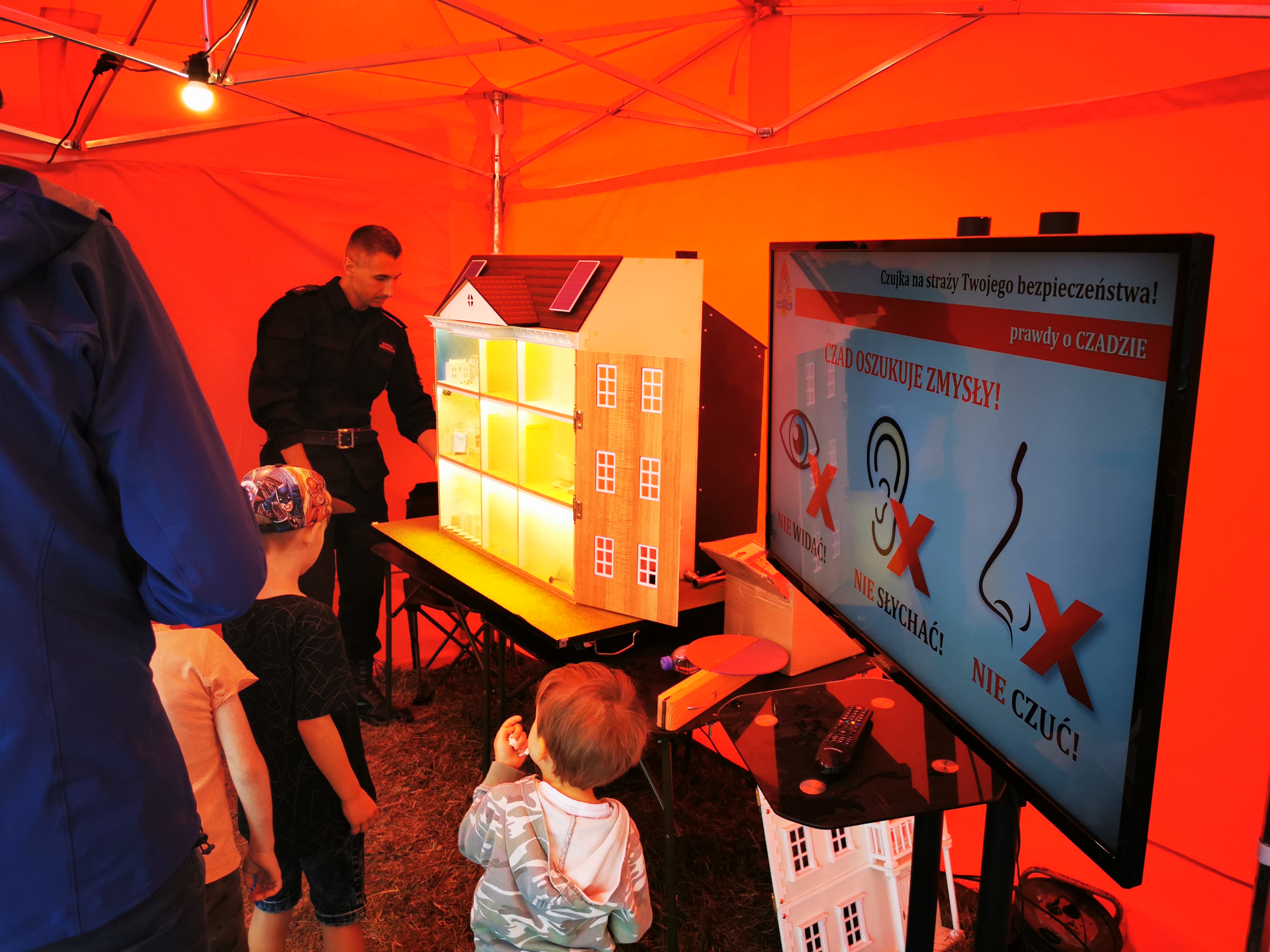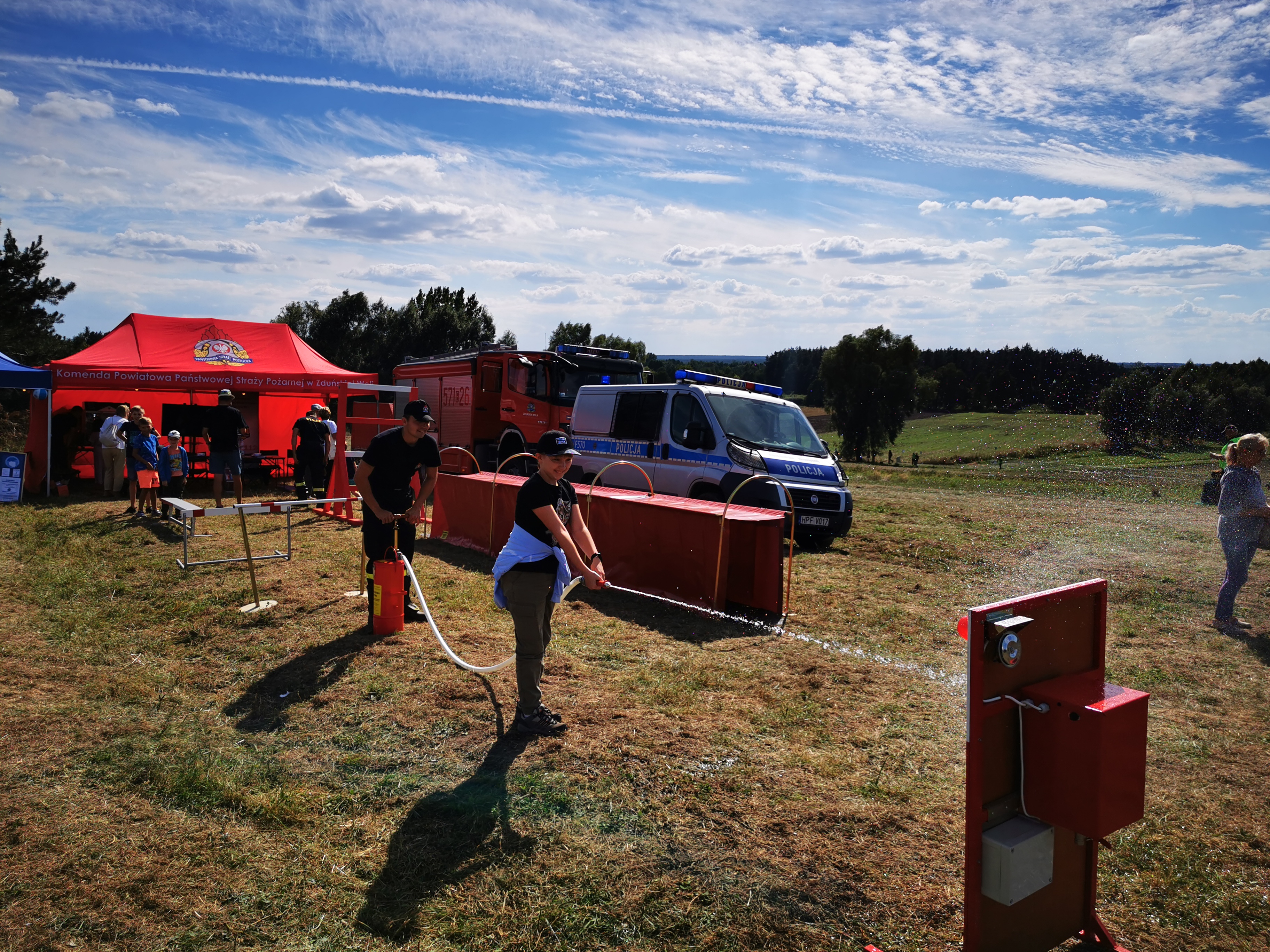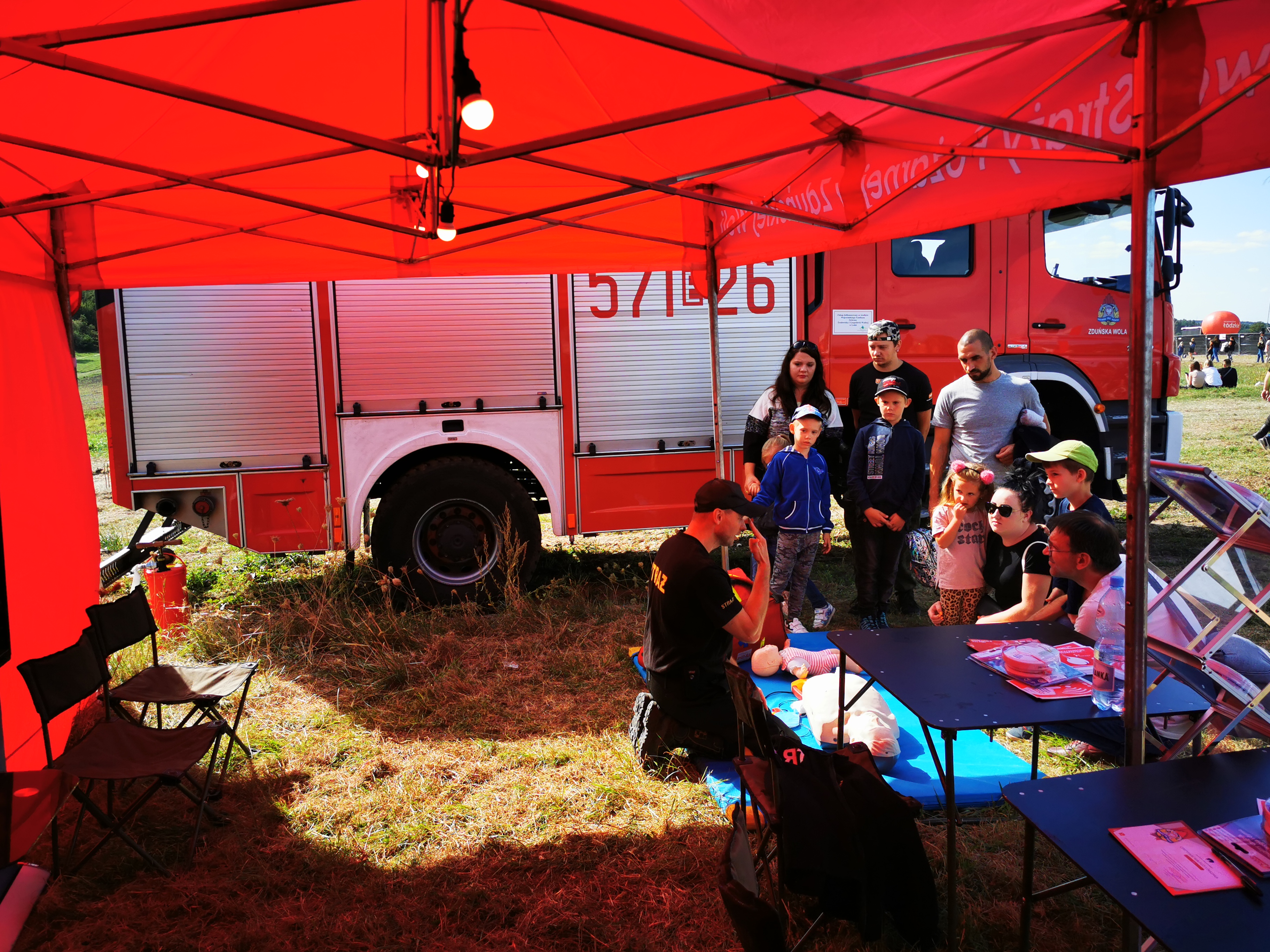 Podczas towarzyszącego pikniku strażacy z KP PSP w Zduńskiej Woli propagowali społeczną kampanię edukacyjno-informacyjną pod nazwą „Czad i Ogień. Obudź czujność”. Funkcjonariusze na swoim stoisku zaprezentowali symulator zagrożeń pożarowych- dom jednorodzinny, na którym mogli pokazać zagrożenia czyhające na nas w domach i mieszkaniach. Chętni mogli nauczyć się udzielania pierwszej pomocy ćwicząc na fantomie resuscytację krążeniowo oddechową wraz z użyciem AED. Odwiedzający stoisko mogli zapoznać się z czujkami tlenku węgla i dymu oraz dowiedzieć się o zbliżających się w sezonie grzewczym konkursach, w których będzie możliwość wygrania tego typu czujek. Dzieci przed stoiskiem mogły spróbować swoich sił na elementach pożarniczego toru przeszkód oraz zdobyć certyfikat małego strażaka.