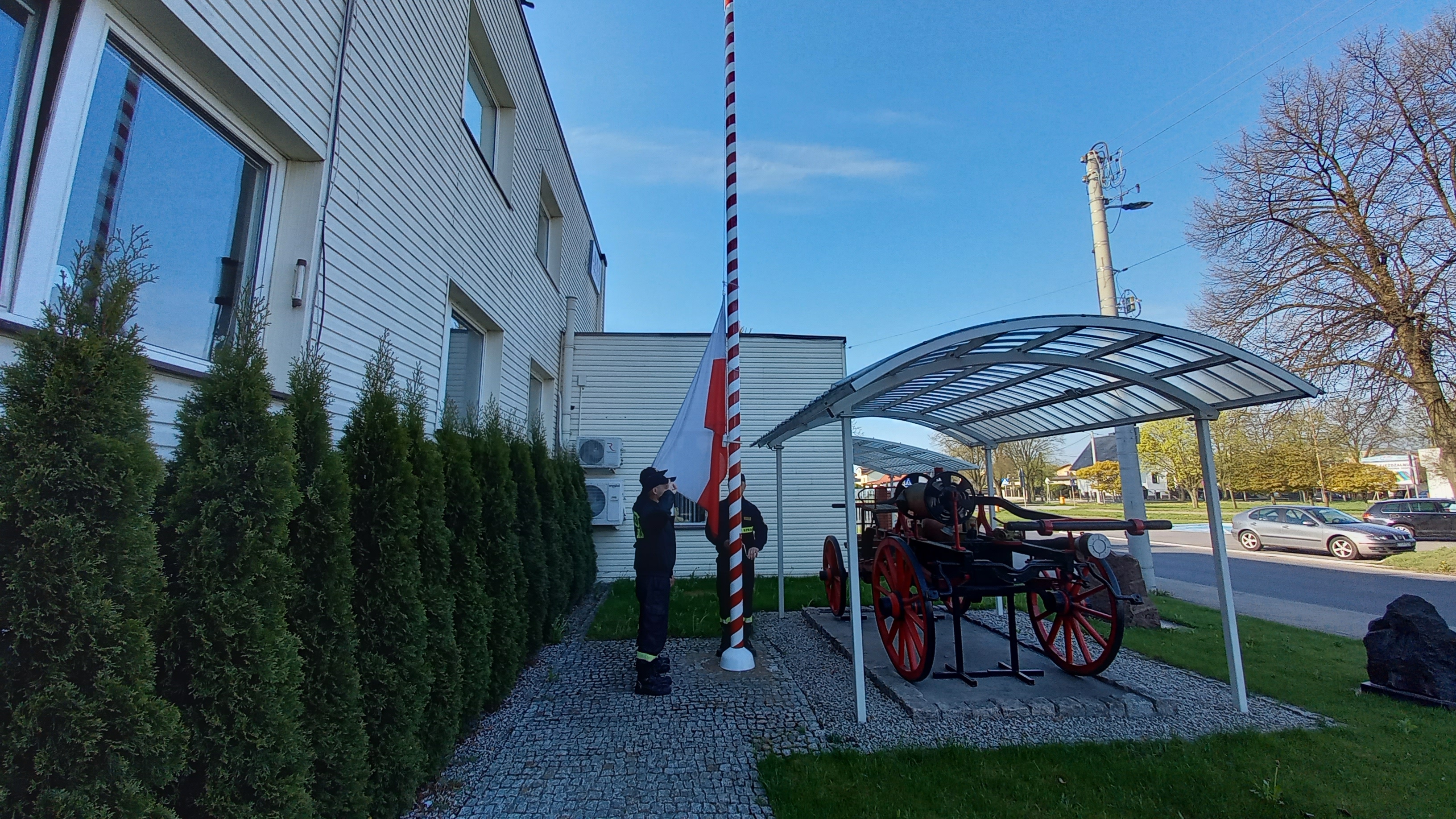 Z okazji Dnia Flagi Rzeczypospolitej Polskiej w Komendzie Powiatowej PSP w Zduńskiej Woli, odbyła się uroczysta zmiana służby Jednostki Ratowniczo-Gaśniczej, podczas której podniesiono flagę państwową RP.