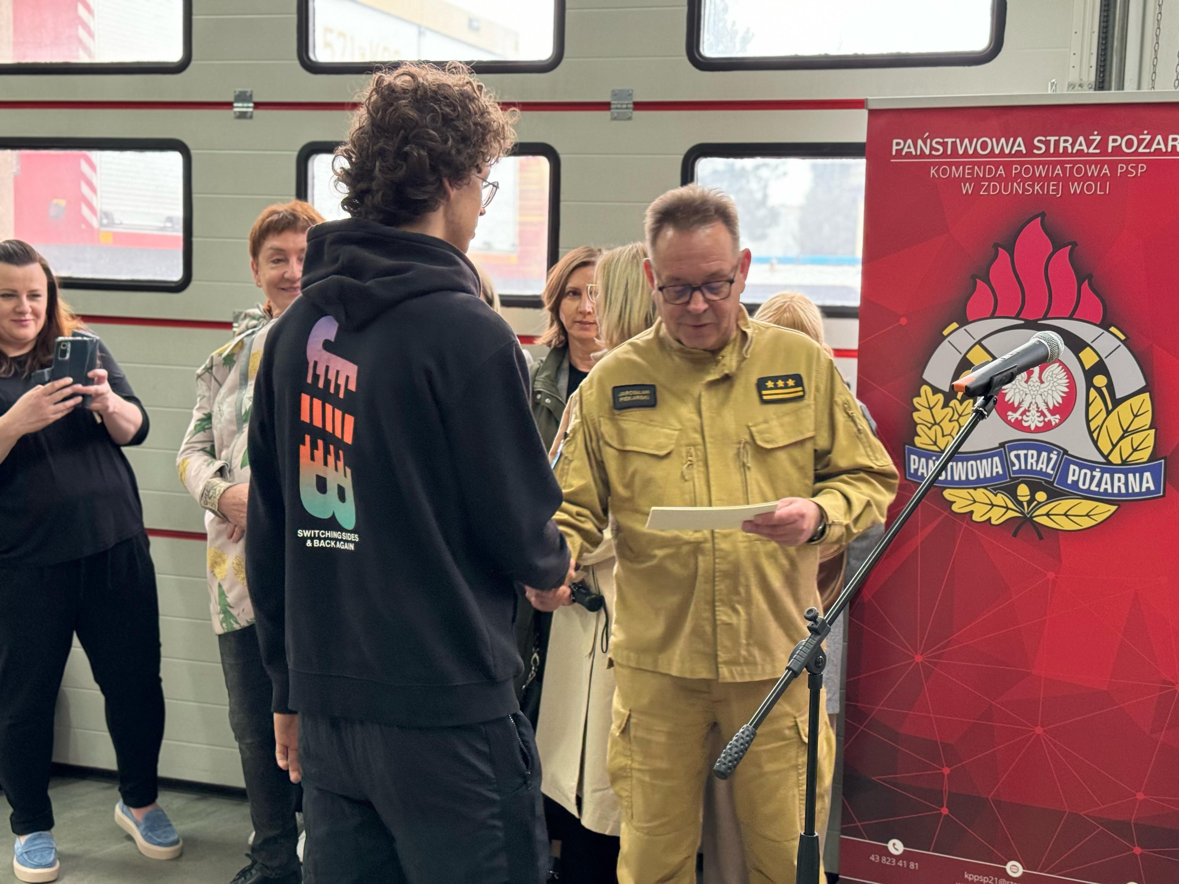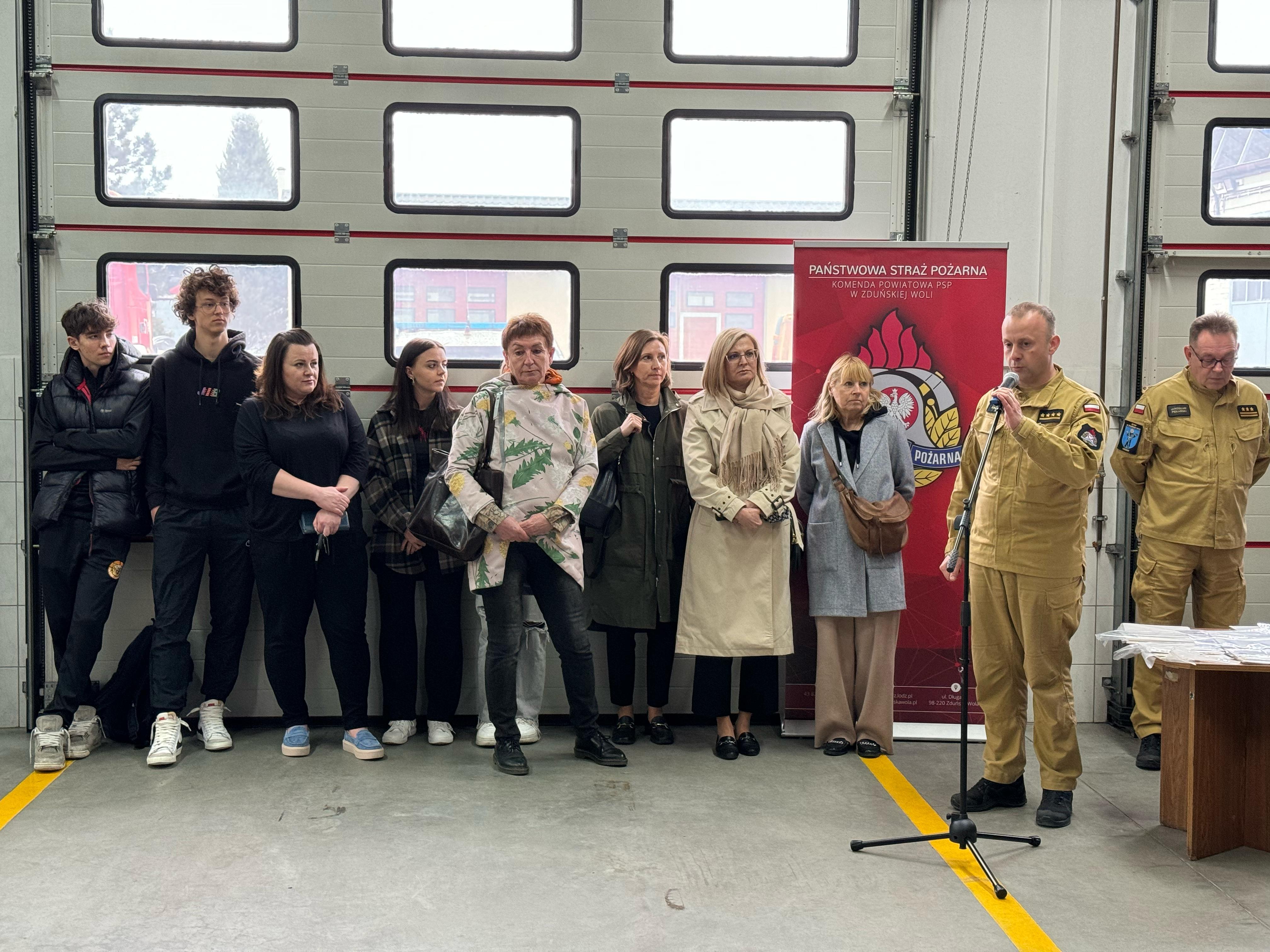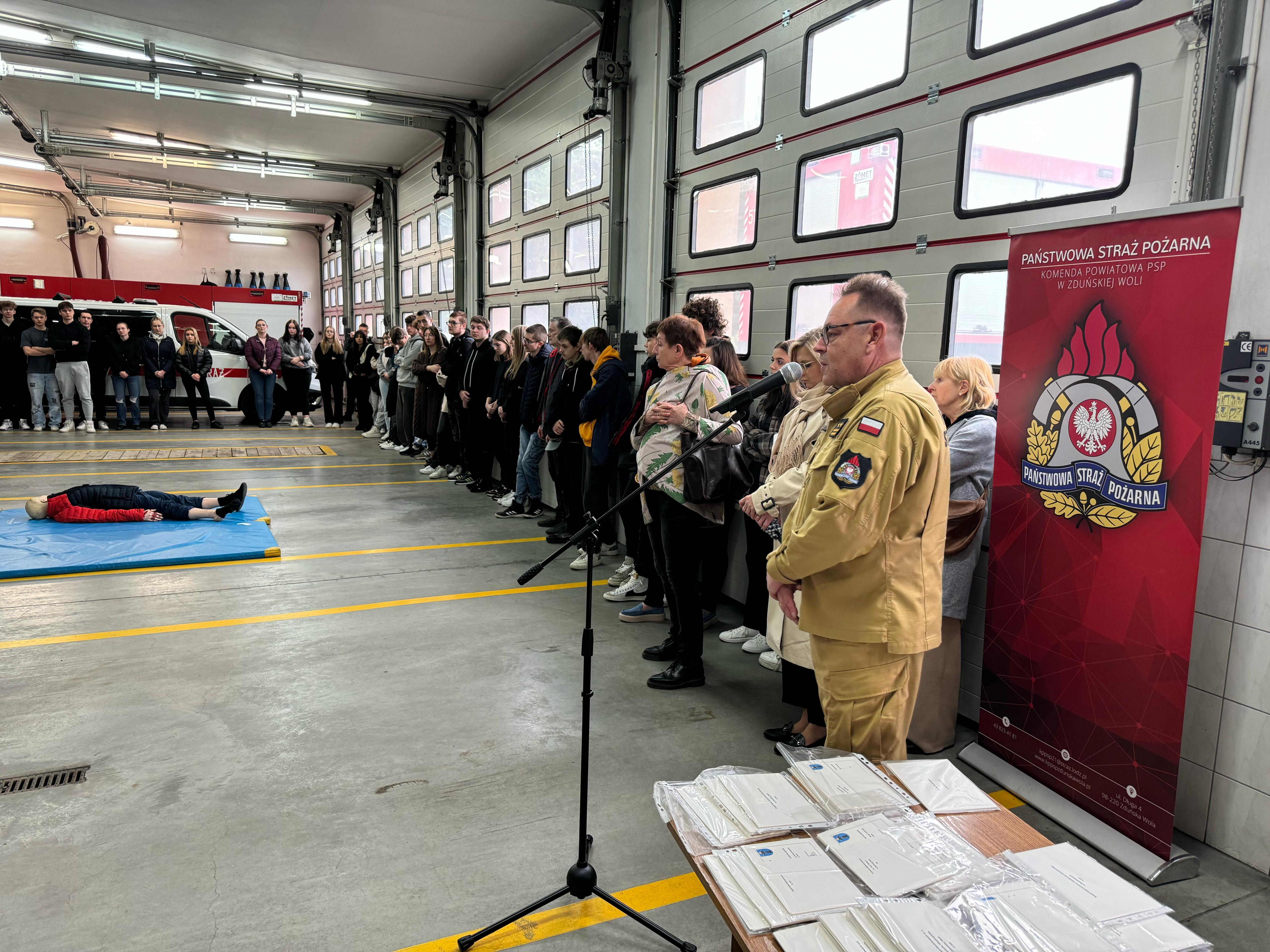 W dniu 15 kwietnia 2024 r. o godzinie 10:00 w siedzibie Komendy Powiatowej PSP w Zduńskiej Woli oficjalnie zakończyła się czternasta edycja wspólnego projektu Komendy Powiatowej Państwowej Straży Pożarnej w Zduńskiej Woli oraz Starostwa Powiatowego pn. "Młodzież i pierwsza pomoc". Szkolenie skierowane było do przedostatnich klas szkół średnich z powiatu zduńskowolskiego. Uczniowie zapoznali się z procedurami udzielania pierwszej pomocy. Program zawierał przede wszystkim praktyczne zajęcia z prowadzenia resuscytacji krążeniowo-oddechowej, obsługi AED, tamowania masywnych krwotoków oraz m.in. sposoby reagowania przy zadławieniach lub oparzeniach.