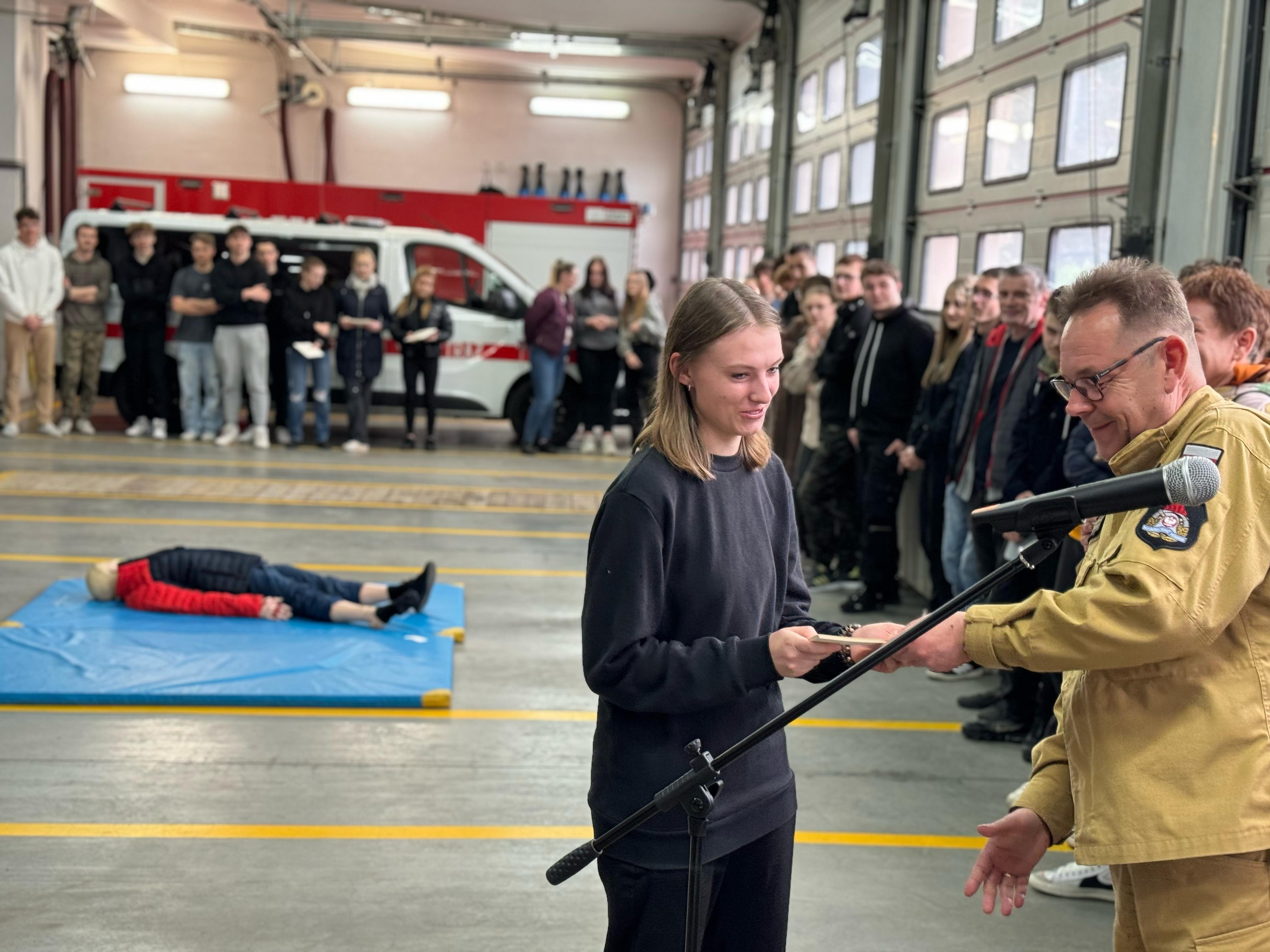 Podczas finału młodzież pokazała jak powinno się udzielać pierwszej pomocy przy zatrzymaniu krążenia wykorzystując AED. Następnie przedstawiciele ze wszystkich szkół średnich z terenu powiatu zduńskowolskiego odebrali certyfikaty dla uczestników szkolenia, które odbywało się od 19 lutego 2024 roku do 08 kwietnia 2024 roku. Łącznie zduńskowolscy strażacy przeszkolili ponad 600 osób.