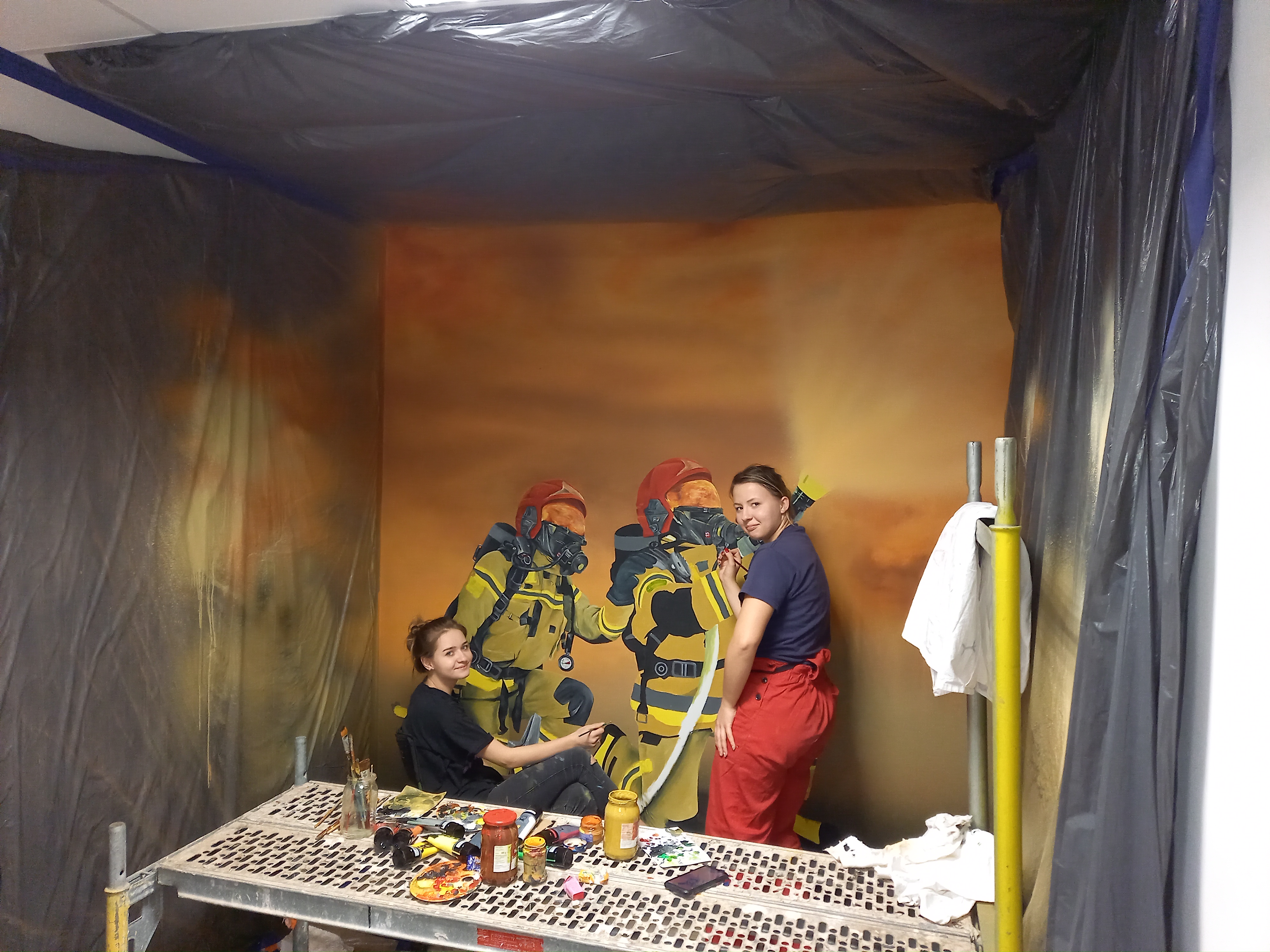 W ramach współpracy Komendy Powiatowej Państwowej Straży Pożarnej w Zduńskiej Woli oraz Państwowego Liceum Sztuk Plastycznych im. Katarzyny Kobro w Zduńskiej Woli, na jednej ze ścian tut. komendy powstał efektowny mural. Autorką i realizatorką pracy jest uczennica czwartej klasy PLSP Jagoda Krankowska, której pomagała uczennica Anna Przygodzka. Nad całością projektu i jego realizacją czuwał nauczyciel rysunku i malarstwa Pan Marian Olejniczak. W imieniu funkcjonariuszy i pracowników cywilnych tut. komendy serdecznie dziękujemy za realizację projektu, który znacznie umili nam pełnienie służby w budynku KP PSP w Zduńskiej Woli.