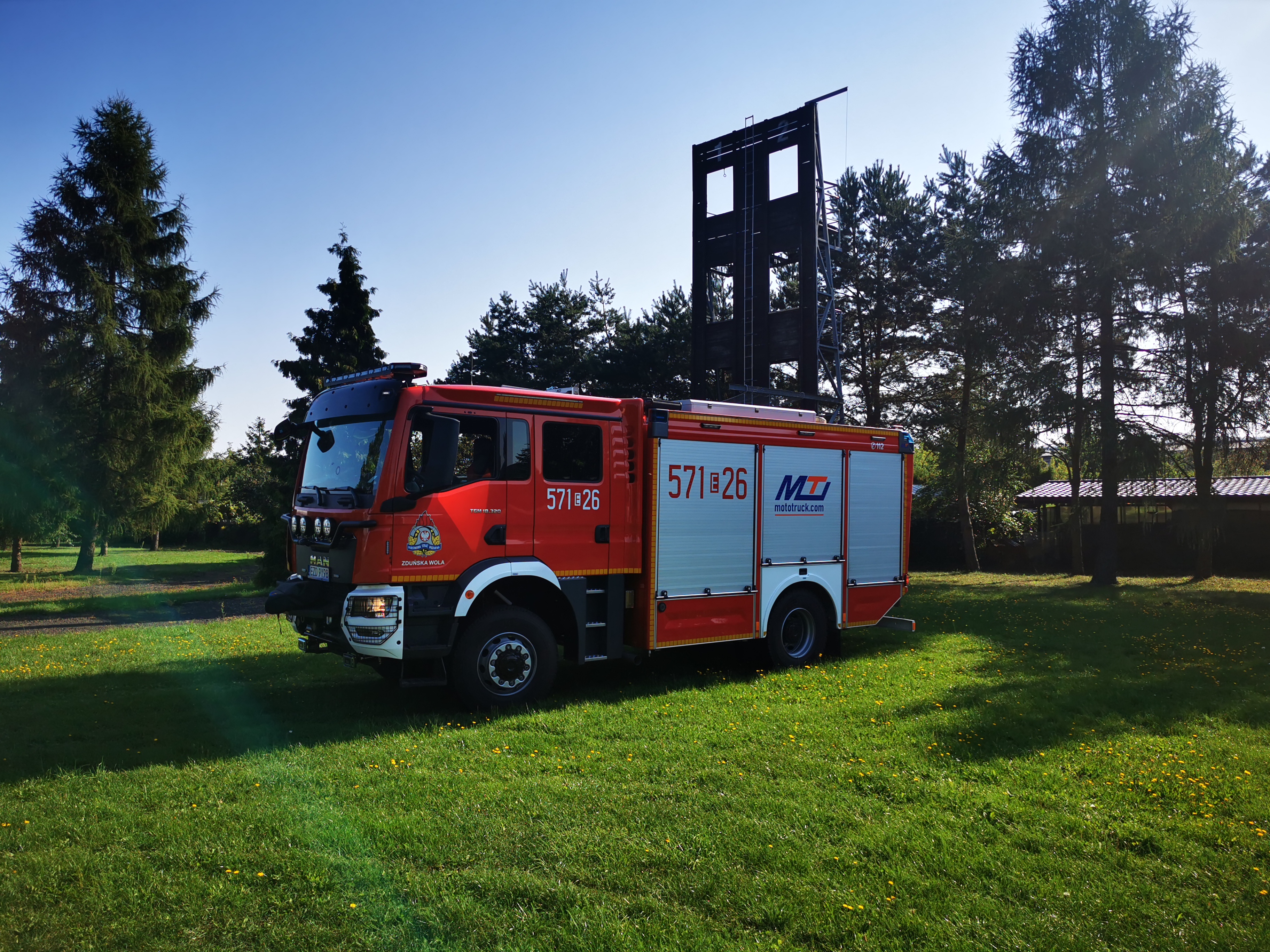 Do Jednostki Ratowniczo-Gaśniczej PSP w Zduńskiej Woli trafił nowy ciężki samochód ratowniczo-gaśniczy. Wóz zabudowała firma Moto-Truck z Kielc na dwuosiowym podwoziu MAN TGM 18.320 z kabiną sześcioosobową, z silnikiem o mocy 320 KM. Pojazd wyposażony jest w zbiornik wody o pojemności 5000 litrów, zbiornik środka pianotwórczego 539 litrów, autopompę o wydajności 4265 litrów na minutę, działko wodno- pianowe, linię szybkiego natarcia, wyciągarkę i maszt oświetleniowy.
