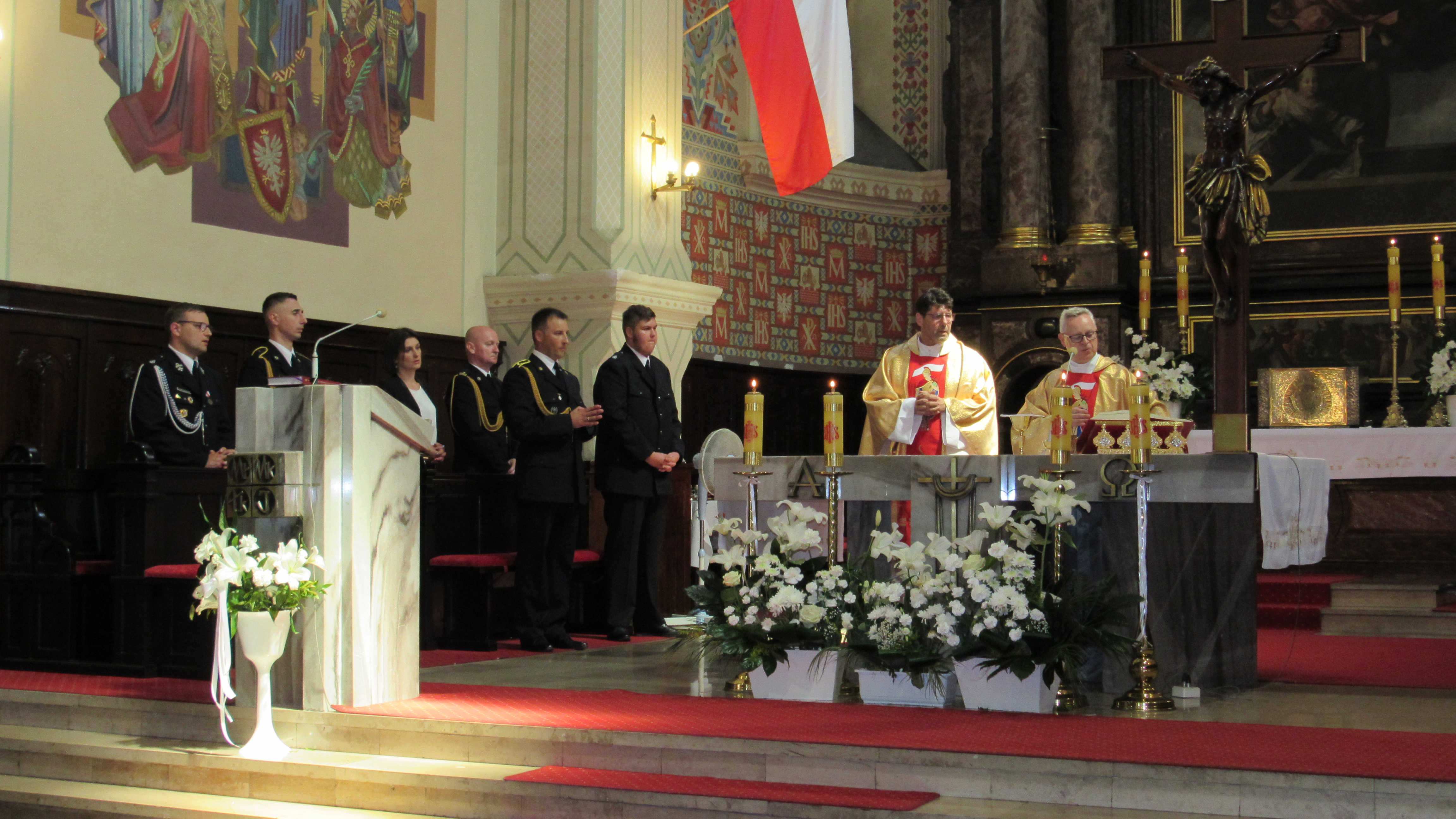 Pierwszym punktem Obchodów była Msza Święta w Bazylice Wniebowzięcia Najświętszej Maryi Panny w Zduńskiej Woli w intencji strażaków powiatu zduńskowolskiego, której przewodniczył ks. Adam Stańdo (kapelan strażaków województwa łódzkiego) przy współudziale ks. prał. dr. Dariusza Kalińskiego (kapelana strażaków powiatu zduńskowolskiego).