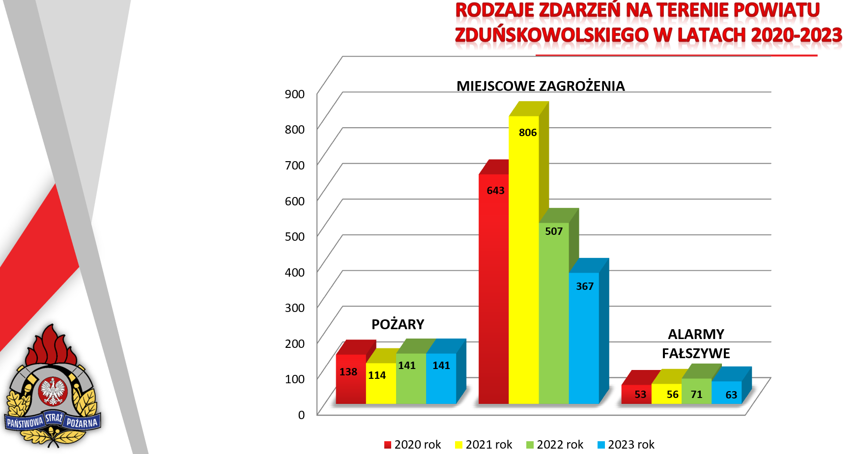W roku 2023 strażacy z powiatu zduńskowolskiego interweniowali 571 razy to jest o 148 razy mniej niż w roku 2022.