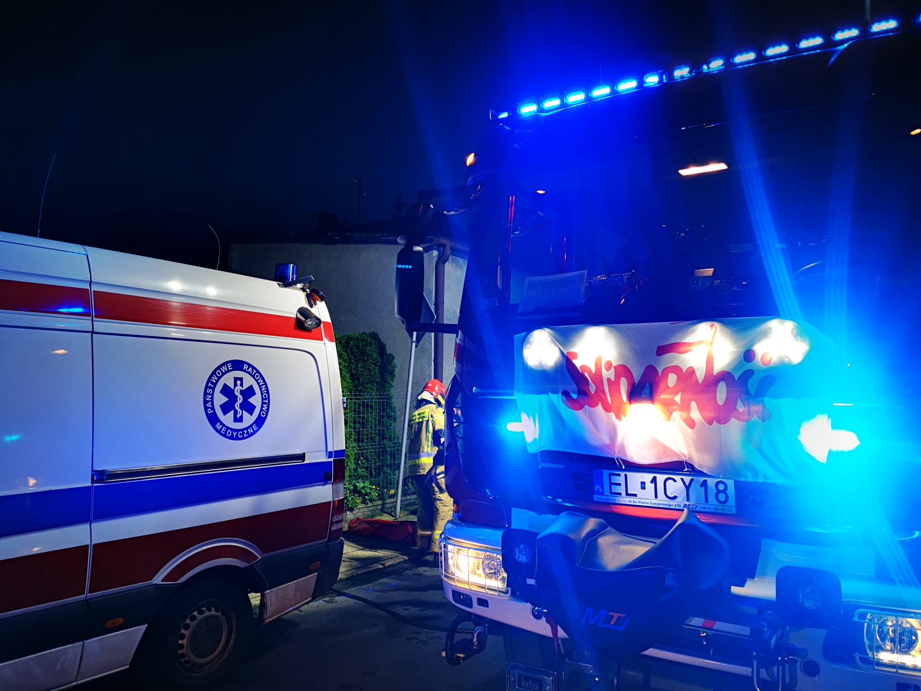 W dniu 23.10.2022 r. około godziny 17:40 dostaliśmy zgłoszenie o 2 osobach znajdujących się w zadymionej piwnicy domu jednorodzinnego przy ulicy Chopina w Zduńskiej Woli. Przybyli na miejsce strażacy przystąpili niezwłocznie do ewakuacji osób poszkodowanych na zewnątrz budynku gdzie następnie prowadzili resuscytację krążeniowo oddechową. Niestety przybyły na miejsce ZRM stwierdził zgon dwóch osób.
