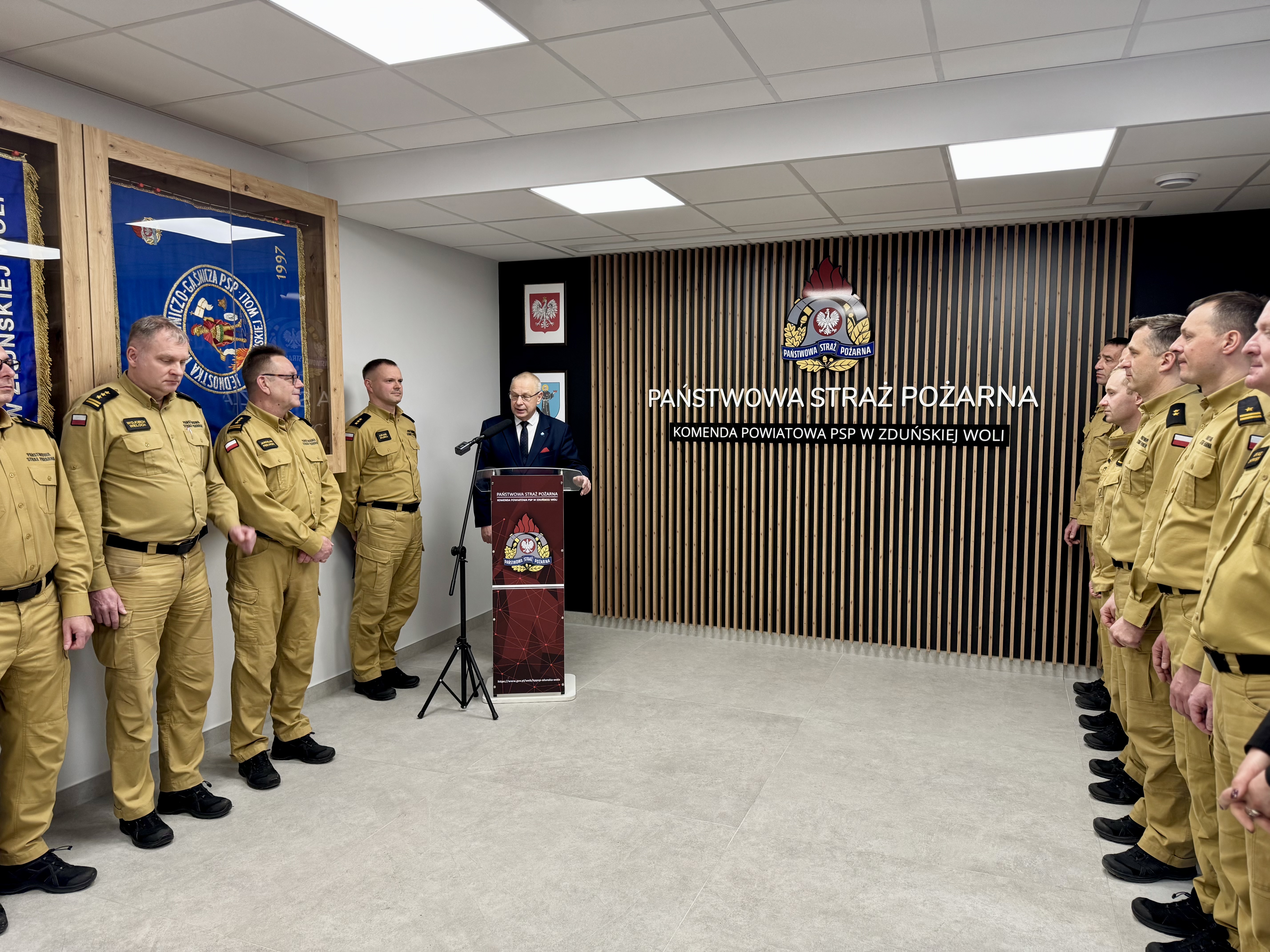 W dniu 23 stycznia 2026 roku w siedzibie Komendy Powiatowej Państwowej Straży Pożarnej w Zduńskiej Woli przy ul. Długiej 4 odbyła się uroczystość otwarcia przebudowanych i wyremontowanych obiektów Komendy.
