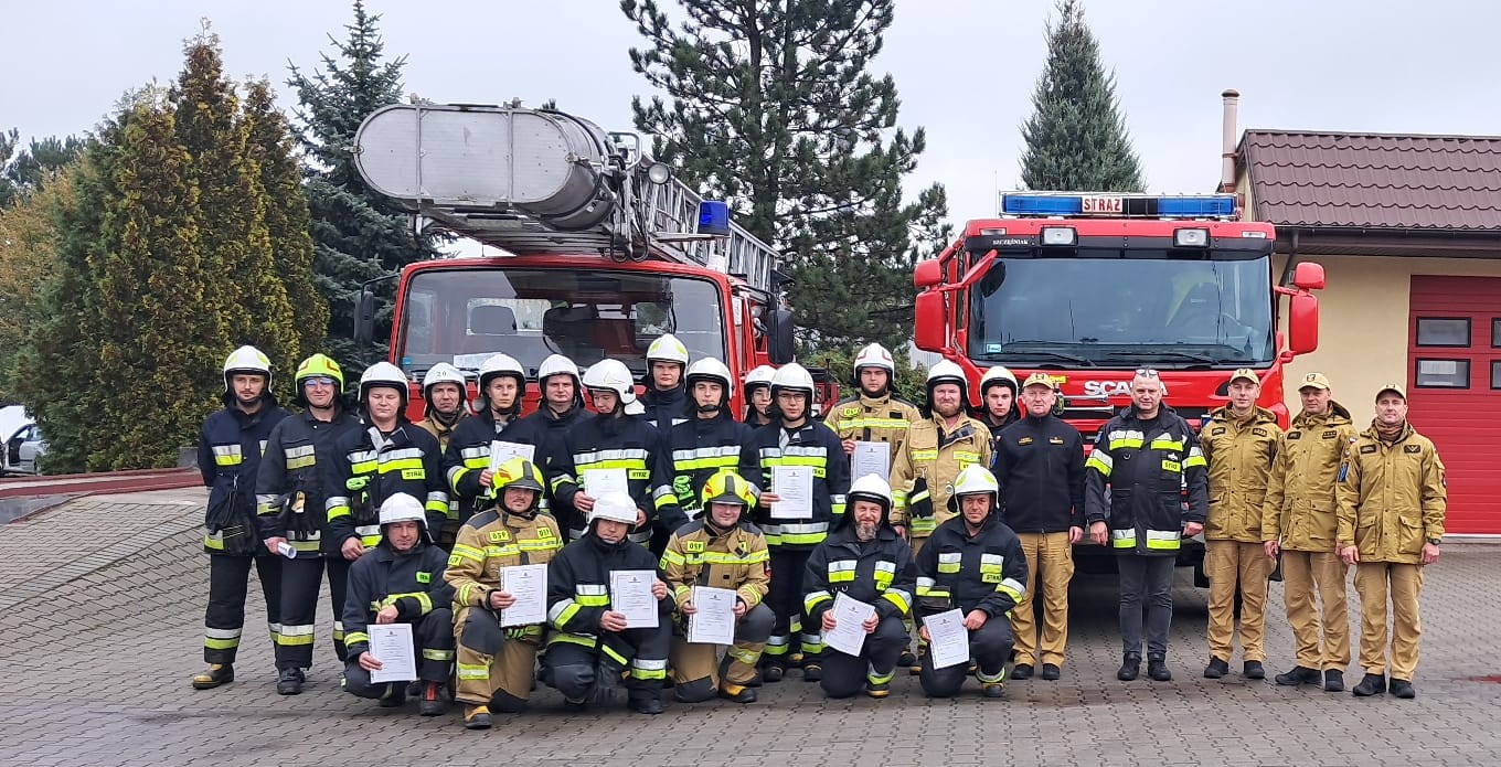 Egzamin końcowy w dniu 22 października 2023 r. zaliczyło z wynikiem pozytywnym 23 strażaków OSP. Zaświadczenia o ukończeniu szkolenia wręczyli: mł. bryg. Łukasz Drzewiecki Z-ca Komendanta Powiatowego PSP w Zduńskiej Woli, dh Wojciech Michalski Prezes Zarządu Oddziału Powiatowego ZOSP RP, st. kpt. Dawid Krauze, st. kpt. Konrad Filipczak oraz mł. asp. Maciej Wojtalik.
