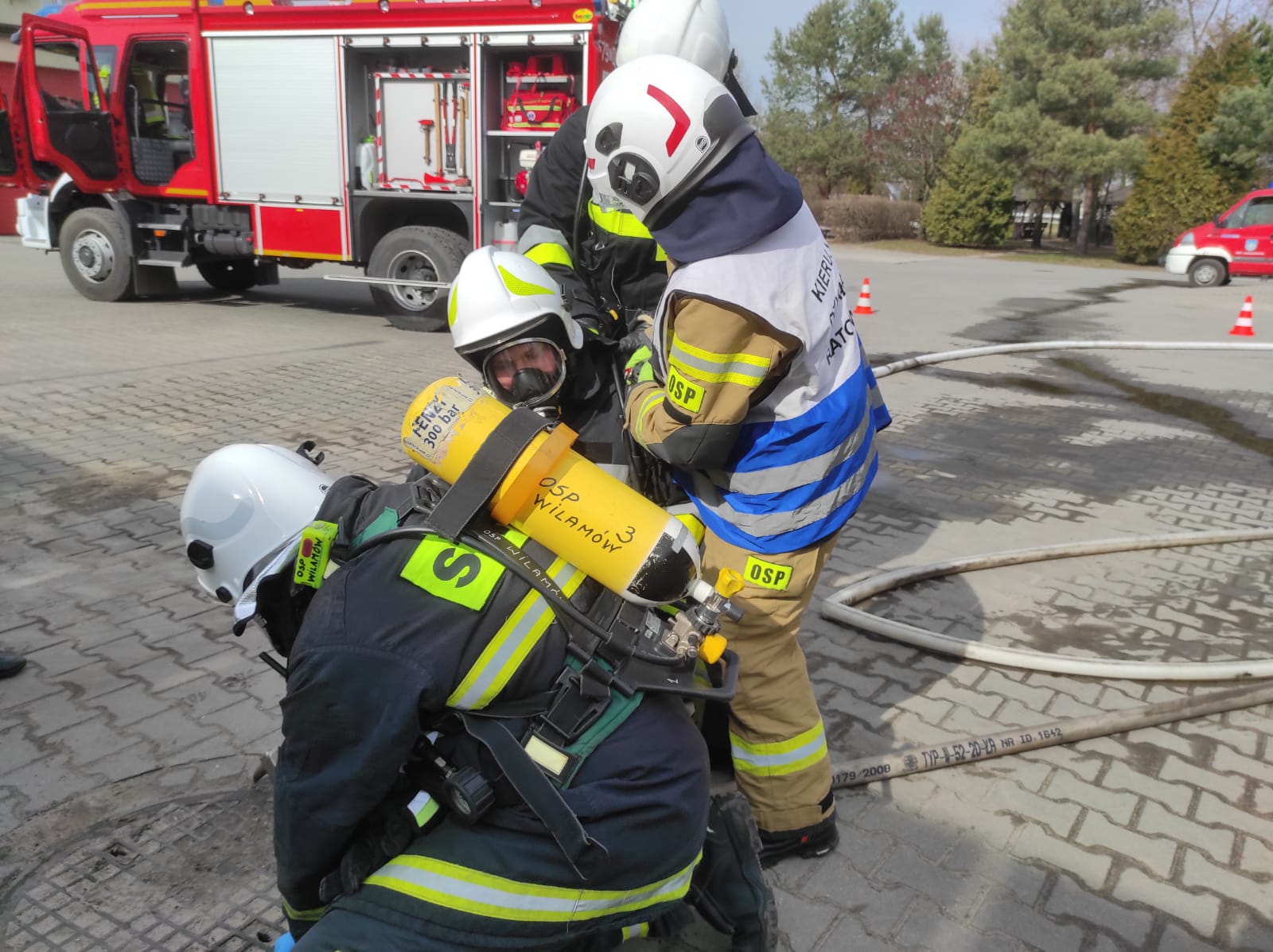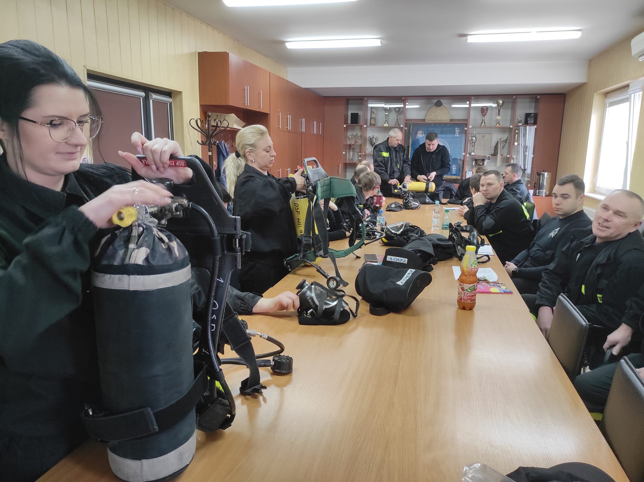Na przełomie miesięcy luty i marzec 2023 roku funkcjonariusze Komendy Powiatowej Państwowej Straży Pożarnej w Zduńskiej Woli przeprowadzili „Szkolenie podstawowe strażaka ratownika Ochotniczych Straży Pożarnych” przeznaczone dla druhów jednostek OSP z terenu powiatu zduńskowolskiego. Zarówno część teoretyczna szkolenia jak i zajęcia praktyczne realizowano w siedzibie tut. Komendy oraz w komorze dymowej Wojewódzkiego Ośrodka Szkolenia Komendy Wojewódzkiej PSP w Łodzi z siedzibą w Sieradzu. Słuchacze szkolenia zostali zapoznani z: obsługą sprzętu ochrony układu oddechowego, obsługą ratowniczego sprzętu mechanicznego, taktyką działań gaśniczych, taktyką działań ratowniczych, obsługą drabin pożarniczych, podstawami kwalifikowanej pierwszej pomocy, organizacją łączności oraz obsługą sprzętu hydraulicznego.