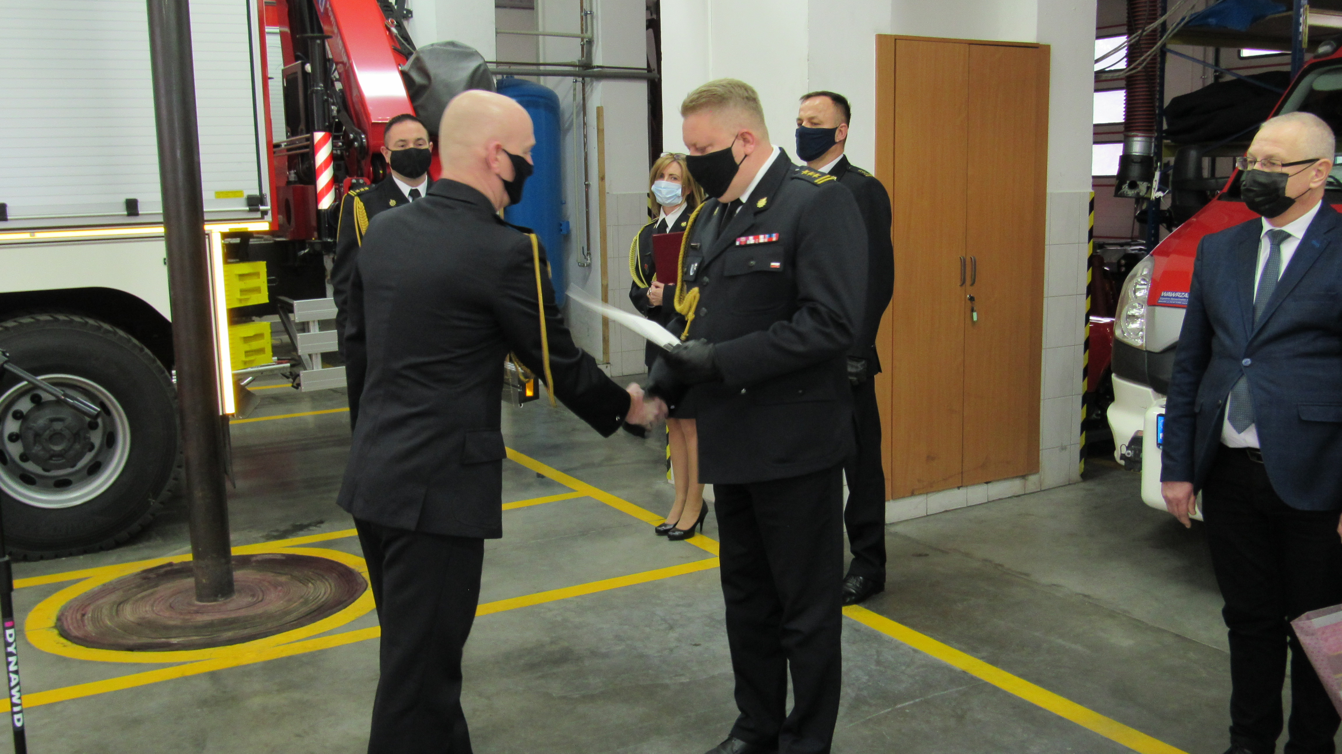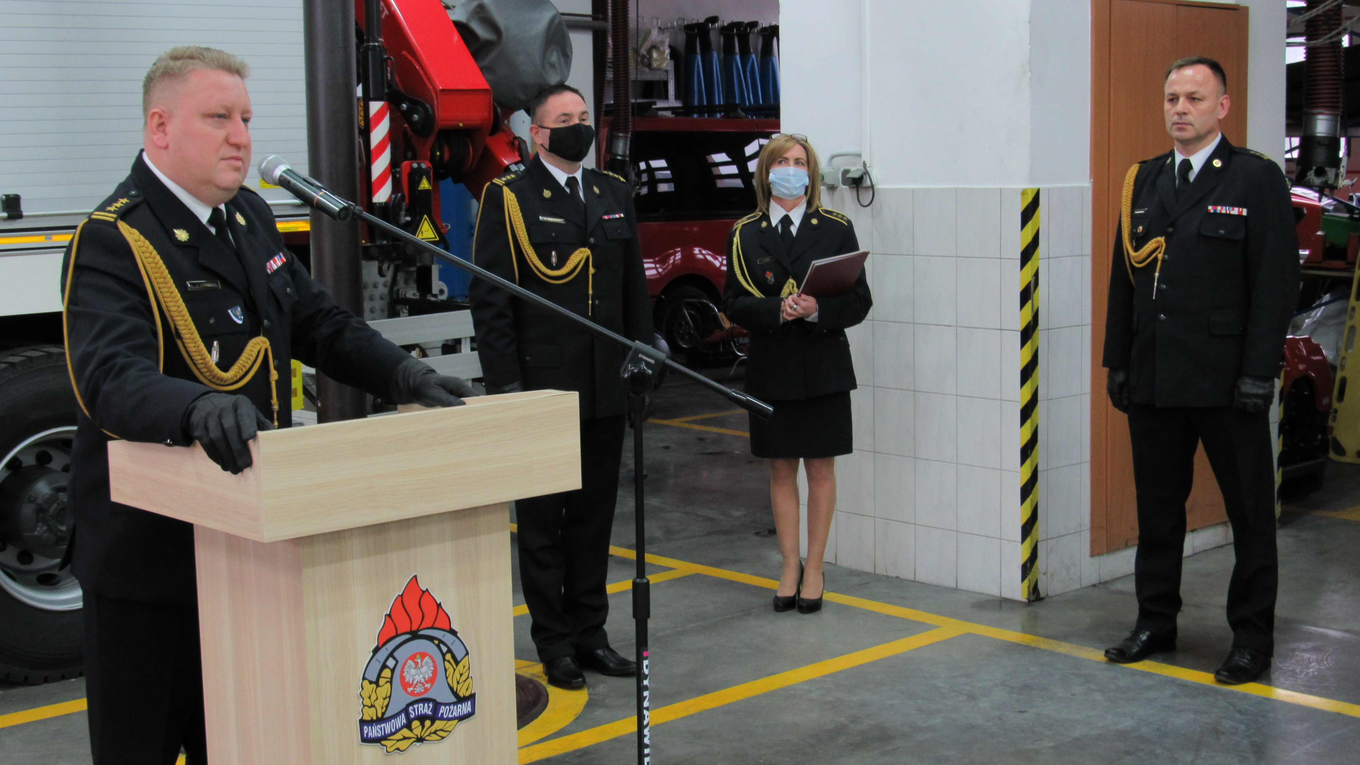 Podczas uroczystości została odczytana decyzja personalna o powierzeniu obowiązków Komendanta Powiatowego Państwowej Straży Pożarnej w Zduńskiej Woli st. kpt. Łukaszowi Drzewieckiemu od 01.02.2021 r. do 31.03.2021 r.