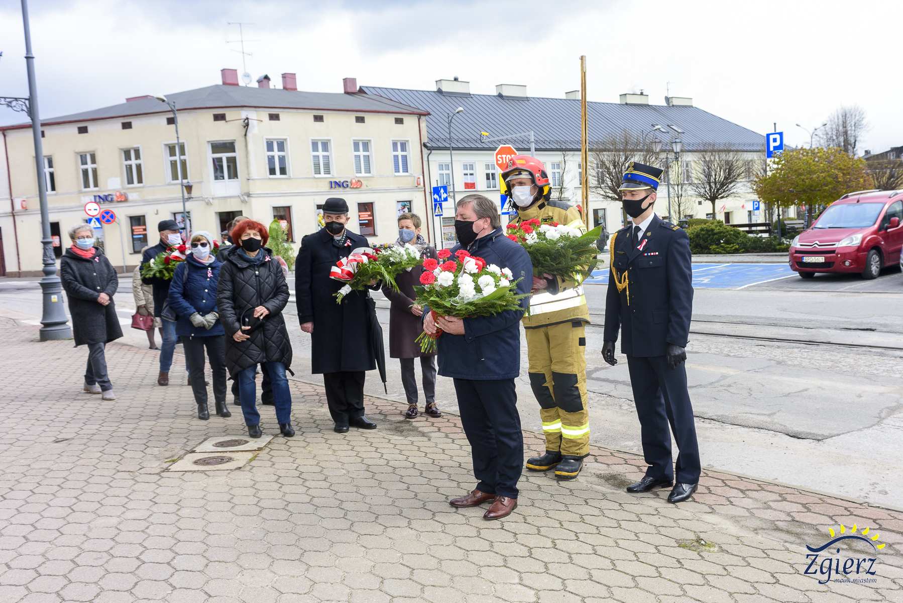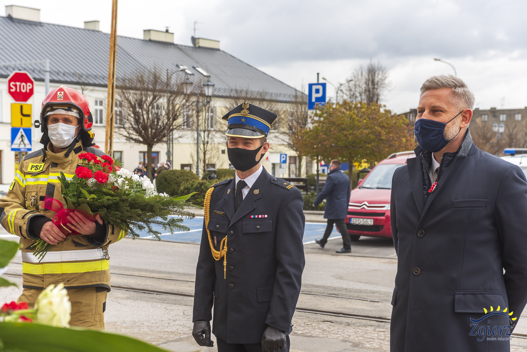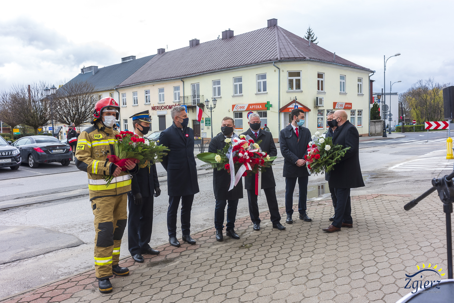Przed Urz臋dem Miasta Zgierza kwiaty z艂o偶yli przedstawiciele w艂adz miasta, s艂u偶b mundurowych, placówek o艣wiatowo-kulturalnych oraz organizacji politycznych i spo艂ecznych.