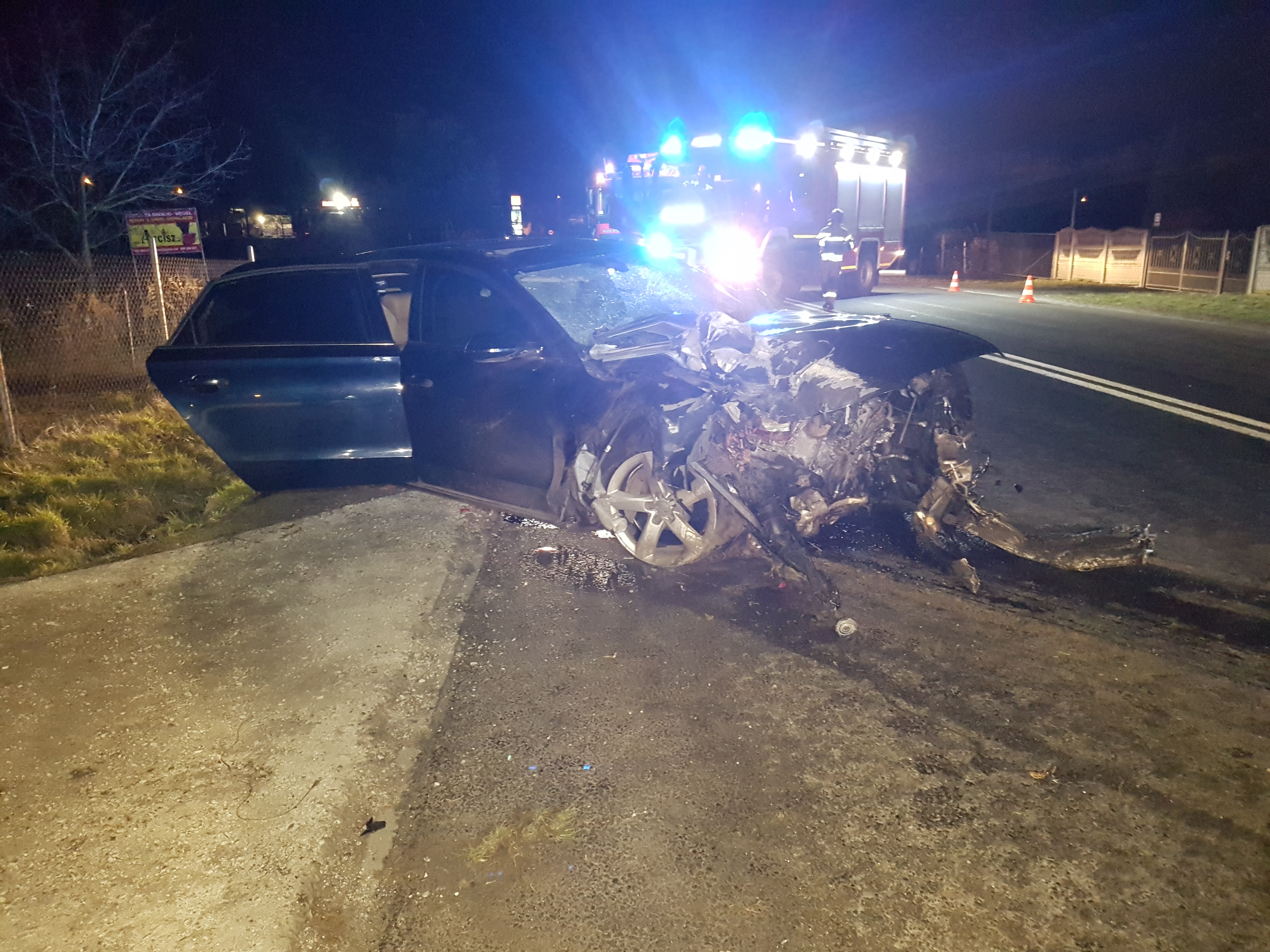 Po dojeździe na miejsce zdarzenia okazało się, że kierowca samochodu na łuku drogi stracił panowanie nad pojazdem, uderzył w budynek i następnie przeleciał na drugą strone jezdni.